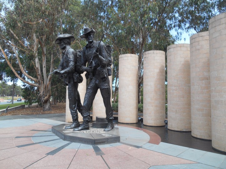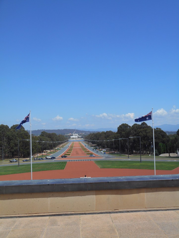In the morning they lent me a bike, a pretty good way to explore Canberra as its flat and fairly quiet! I biked through town to Lake Burley Griffin and then turned up Anzac Parade. This straight parade led up to an impressive memorial, on each side statues remembered different wars and different groups such as nurses and infantry. It reminded me of Berlin. Once at the memorial, your view back was unobscured to Parliament Hill.