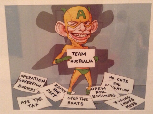 The one which had caught my eye was political cartoons from 2014. Satirists had pictured policy and mistakes such as the changes to budget which caused Quantus job loses, the three word election campaign generator which saw Labour rise to power, and any excuse to take the mick out of Tony Abbots big ears!
