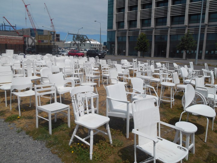 Some parts, like Regent street, remain largely untouched and show old Christchurch. We flitted between these, and clear markers of the destruction such as the 185 empty chairs. This monument is a variety of chairs in an empty space, all painted white. None of them are screwed down and they do occasionally blow over. The designer poignantly said, they are temporary as is life. The chairs were either donated by the relatives or people around the city which is moving as they represent a little of the person, from benches to bean bags, stools and a baby carry cot.