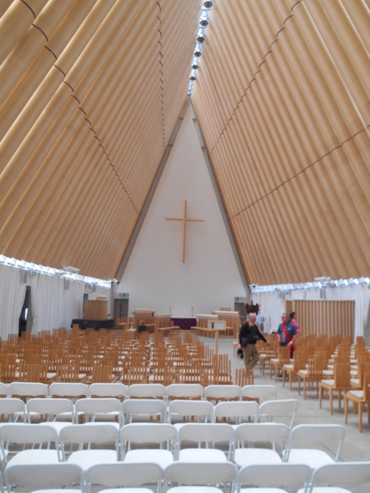 We also went to the Cardboard cathedral, the cities replacement which took a year and a half to build. It sits, much like everything on the city, on 8 shipping containers. The roof made of rolls of cardboard and metal. It has a glass window made up of imaged from the stain glass window. It has a steeple structure in the park immediately in front of it meaning if you stand at the right angle, it looks like it is part of the structure. It isn’t traditionally beautiful, but it’s inventive and has that same Christchurch positivity and spirit which is uniquely part of this rebuild.