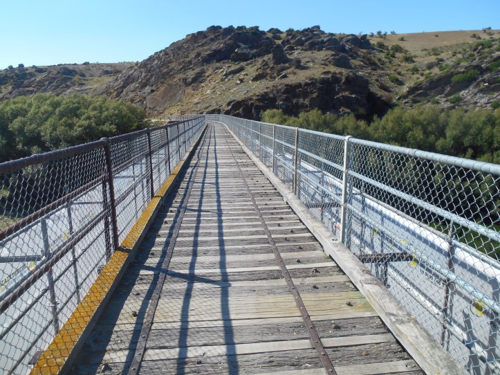 On the trail I passed a woman who had managed to lose her husband despite it being one long trail that even I was managing to keep direction on. Then the ever changing scenery began to climb to the highest part of the trail just before Wedderburn, at 618 metres above sea level. It was a gradual climb but in the exposed heat of the afternoon sun, it was nice to turn the wheels downhill and towards Ranfurly where I would stop the night. The horizon opened out to “big sky country” which had wide open farmland and not a person in site.