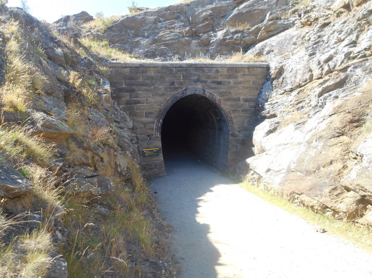 The trail cuts through two tunnels in quick succession, 230 metres then 202 metres of dark. It is oddly disorientating passing through, even dismounted, towards the hole of sunlight at the end.