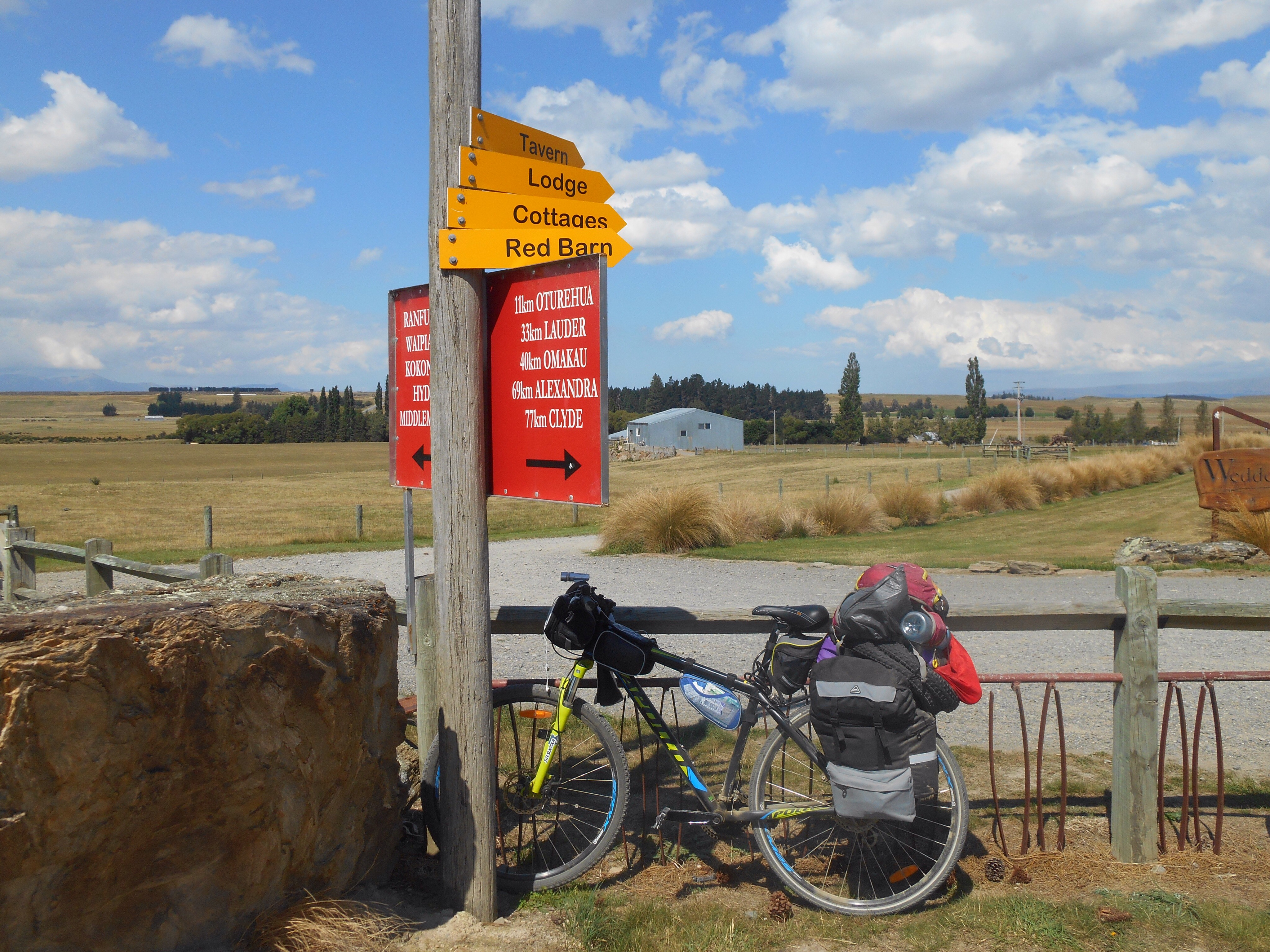 I made a New Zealand error in bypassing the Ranfurly cafe thinking I would get breakfast 8km further on in Waipiate, however the little station town was deserted, the pub far from open. I pushed on to Hyde, 25kms further. On the way, encountering a bump, my heavy luggage caused the rack to collapse. I had my gear off, the wrench out and about half an hour later I was good to go again, feeling concerned, but also proud of my makeshift skills.
