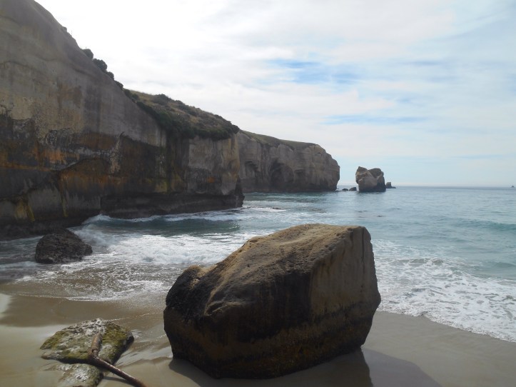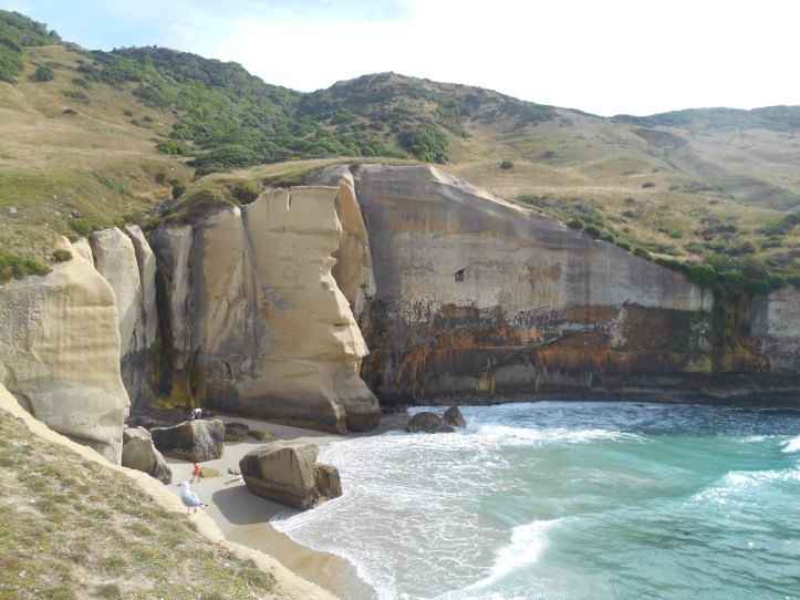 We drove up the coast a little further to explore Tunnel beach. Here the rocky cliffs drop away dramatically, and little inlets and tunnels reveal themselves. The lone standing rock formations are interesting having been bashed by the seawater into unique shapes. The are reminded me much of the drive along Great Ocean Road in Australia. There is a tunnel dug out of the rock where many steps lead down into the cove. This is rumoured to have been dug by a local farmer for his lover, or family, depending on who you talk to. Me, along with a few seagulls dipped our toes into the water before a sweaty trudge back up the hill.