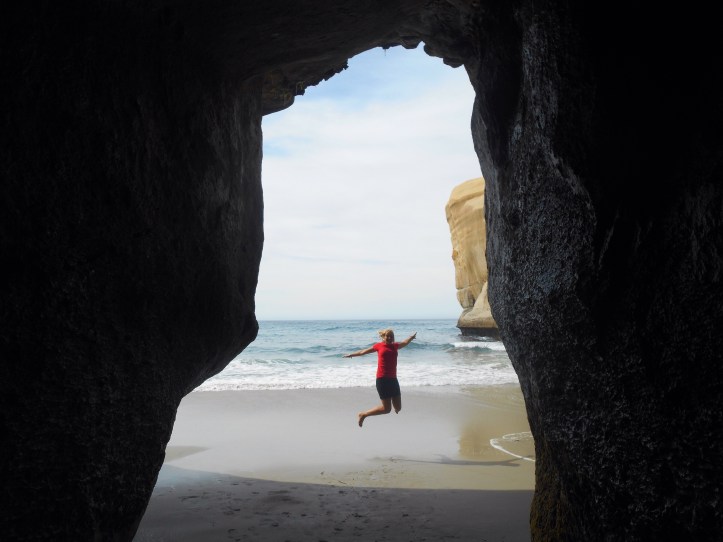 We drove up the coast a little further to explore Tunnel beach. Here the rocky cliffs drop away dramatically, and little inlets and tunnels reveal themselves. The lone standing rock formations are interesting having been bashed by the seawater into unique shapes. The are reminded me much of the drive along Great Ocean Road in Australia. There is a tunnel dug out of the rock where many steps lead down into the cove. This is rumoured to have been dug by a local farmer for his lover, or family, depending on who you talk to. Me, along with a few seagulls dipped our toes into the water before a sweaty trudge back up the hill.