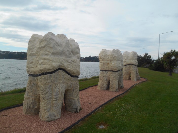 Determined to cycle the 75km round trip which would take me out onto the Otago Peninsula, I set off in good time to follow the lie of the land. The teeth sculpture, a clever representation of the mouth of the harbour. The flat path followed the harbour, many inlets hiding the city and revealing more mountainous green and small settlements. The most populous, about 20km was my coffee stop, Portabello, then the road continued on to the very end of the road, the final jut out to see, Tairoa head. After a short climb, the head was filled with the noisy chirps of much bird life. Albatross and Penguins call this land home. At this time of day neither of these things would be sighted, the albatross fishing and the Penguins out to sea, however the sea lions were lulling lazily on the beach, rolling and groaning as they digested much like an over indulged child on Christmas. They did not smell as good as they looked, and occasionally barked at each other feistily.