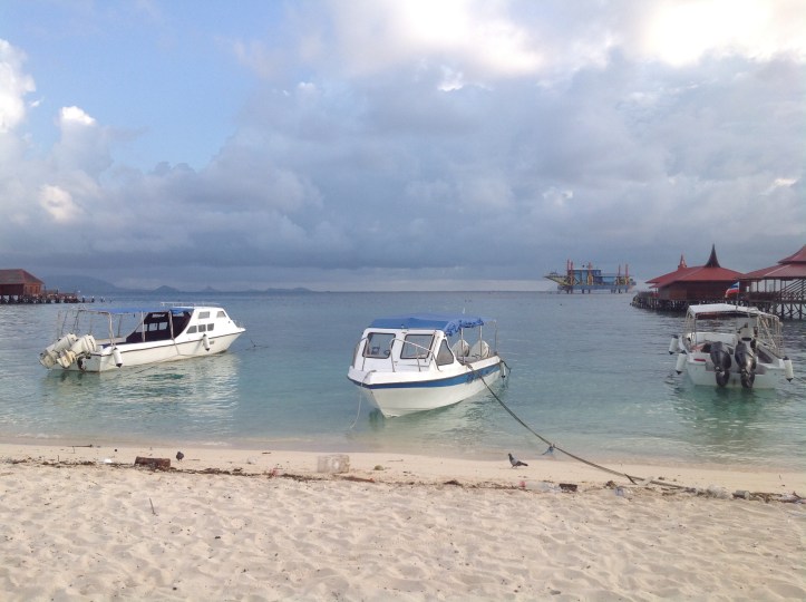 It was 10am in the morning by the time I arrived to Tawau and was greeted by a taxi driver holding my name. Feeling glamorous I hopped into his car where he assured me Semporna was a 20 minute drive, 20 minutes later he said, “just 20 minutes!” After an hour and twenty on dusty roads, passing plantations of coconuts, we arrived in the dirty port town of Semporna. The boat to the island left in a few hours so I sought lunch. My few words of bahasa teamed with some pointing got me some vegetables and rice, a drink and a roti, lunch for all of about £1! The girl who served me giggled, again and again assessing my height as nearly double hers and embarrassed as she tested a few English words.