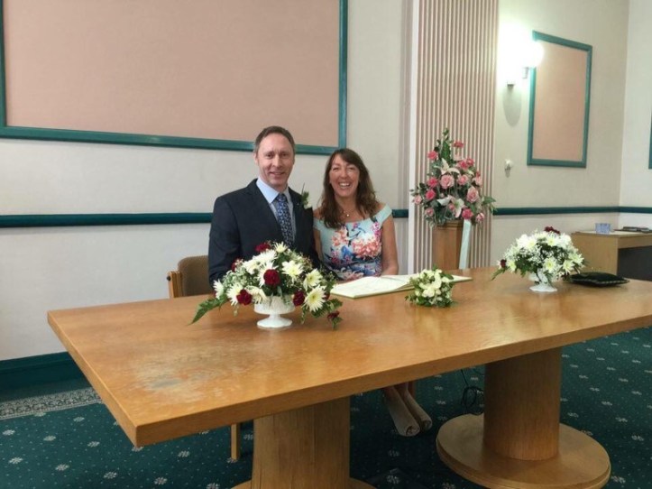 Although there was only a grand total of 15 of us, it was a nerve wracking walk down the aisle and Ian looked quite apprehensive. The ceremony was simple and formal but intimate and special. Once outside we congratulated the newlyweds and split off in our vehicles to race them back to the venue. This involved a few amber lights and some dodgy overtaking but we were there in time to lay out the room and have their song playing as they entered the reception for the first time as Mr and Mrs Jupp.
