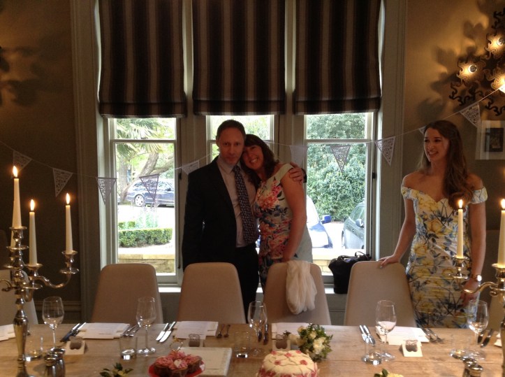 And finally it was the day we had all been waiting for, some of us nervously, others with excitement, but certainly the day which had drawn us all together. We had a schedule to make sure we could get the bride to the church on time, so we arose early to walk the dog, eat together and then separate to allow ample time for hair and make up, David used this time to sit in his boxers selecting the music. Still of course it was a hurry to take some quick photos and pile out of the door. David was the chauffeur, Bex and I in the back holding the cakes as we rallied around the corners and making sure mum wasn’t peaking. Quickly we decorated the room and sped to the registry office.