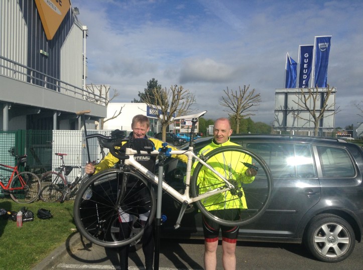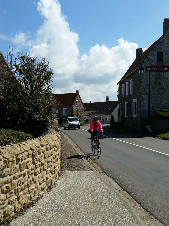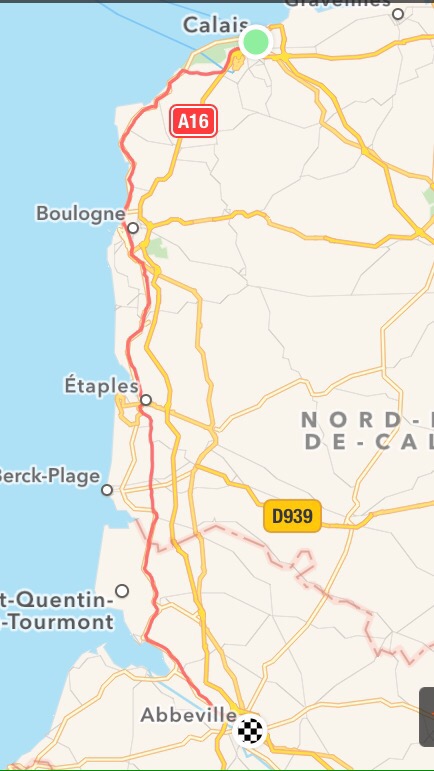 Despite dads jokes about still having us on the bikes by 9am, it was a slower start, repairing the bike issues and giving them a good service. We set off, now on the right hand side, climbing out of Calais. The French roads were quiet and the towns beautiful, little streets and picturesque churches which soon lost there appeal once we made the link between church and hill. The cereal bar an hour trend was wearing very thin and with time pressing on the planned coffee stop in Boulogne sur mare was scrapped. We were following the coast and with lovely blue skies and clear views we could see the white cliffs of Dover we had been so keen to depart the day before.