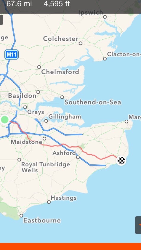 We abandoned the little roads we had been following and headed for Folkstone deciding no one was cycling on without a coffee and a pick me up, who knows, we could still make the next ferry. My resolve had left me and I was the head of team ‘get me on a coach to Dover’ when dad suggested we took the train to Dover to try and make the 19:50 ferry. By now you have realised that he catalogue of pitfalls is far from over, the trains weren’t running, blah blah blah. Plan B, replacement bus service. It went something like this;