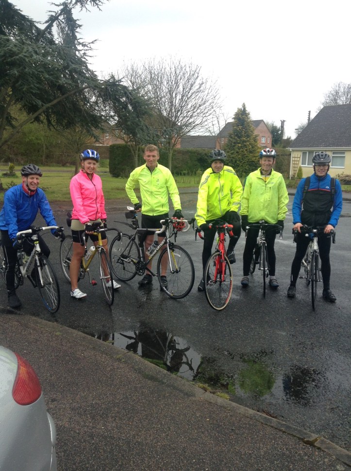 4 miles later we picked up Richard, a few after that, with one short detour, we picked up Martin and were on our way. The plan was to regroup and refuel every 20 miles so we bumbled on to Finchingfield, aptly one of the places on the previous Tour de France route. It was a brisk 10 minute stop before pushing on to Takeley. Grans house was to be lunch stop and warm soup and fresh chocolate muffins certainly helped boost morale and defrost icy toes, but at only 2miles from Stansted airport, it was almost too tempting to alter course. Gran performed her host duties exceptionally providing fresh warm socks and even wrapping my feet in cling film to help with the already wet shoes.