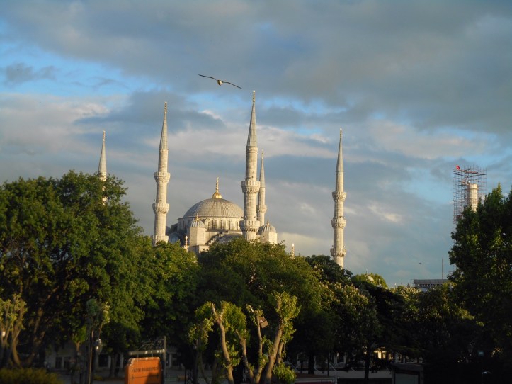 The blue mosque and Hagia Sofia were metres away, the towering turrets of the mosques forming the skyline with the Bosporus sea beyond. It may have been a whole day of transit, but after a quick sit I was keen to walk around. Still light outside, I made my way first to the imposing blue mosque. The recent blasts in turkey seem to have hampered tourism a bit, certainly the season has not started in quite the same way and thus the sellers are keen to get you to spend. Every restaurant has one or two people thrusting menus at you and trying to pull you in. Others stand conspicuously telling you you’re going the wrong way or asking if they can just ask you one question. The result is my slow meander turned into more of a determined march. The currency is Turkish Lira and it is about 3 to the pound. Everything is very affordable.