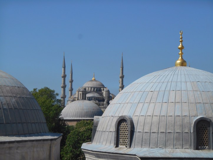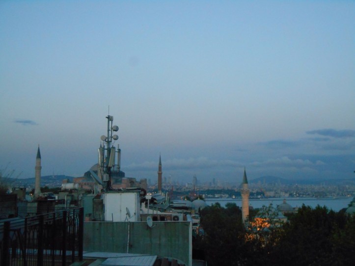After a short flight, an hour jump forward, I boarded a bus as I was assured I needed Taksim, however an hour into the journey, it began to feel like maybe Istanbul airport should be closer to the city. Sure enough after nearly an hour and a half and a short walk I was at the metro. Taksim is a big centre and was filled with lots of police, a site of a blast a few months ago. It was a bustling centre and I was looking forward to not being in transit anymore. I probably asked 20 different people to get me from the square to the metro, to the tram, to my hostel, sometimes things as basic as how do I buy a ticket, where do I put my ticket. When I got to Sultanahmet it was only a short six floors of stairs to climb to get to my hostel, but immediately I was welcomed with Turkish hospitality. I made a cup of coffee and looked out at the view.
