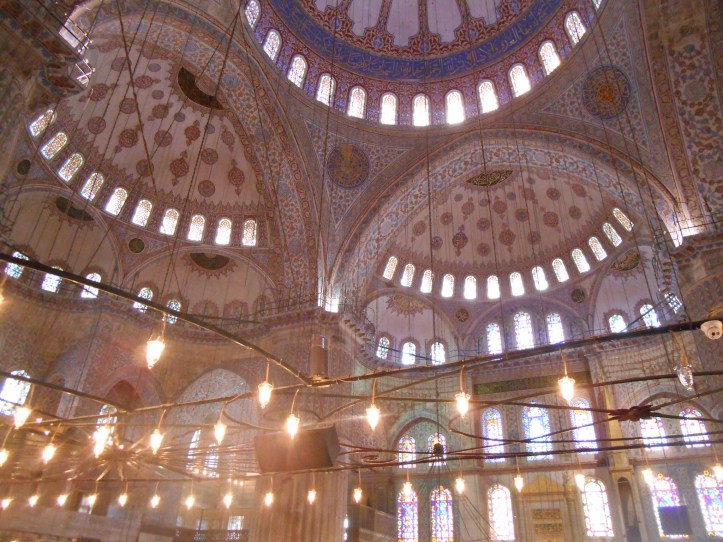 I made my second visit to the blue mosque, this time it wasn’t closed for prayers and covering up with scarves for the hair, jumper and a borrowed floor length skirt, I removed my shoes and was allowed in. The vaulted ceilings were decorated intricately with patterns and writings.