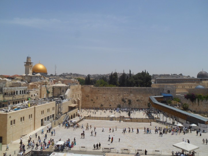 It was scorching the following day as we made for Jaffa gate, entrance to the old city. It is split into 4 quarters, far from equal size. The Armenian quarter is completely closed to outsiders and houses about 3000. The Jewish quarter houses around 7000 and as it was Shabbat was almost completely deserted of workers and trade, a few men sitting in the square playing games. The Muslim quarter houses an incredible 28,000 people. Far from a neatly divided city, it is made of ramshackle alleys and walls, many markets and shops depicting which quarter you are in. Jerusalem was once under Jordanian control and as such, the Jewish quarter was all but flattened in this period. A lot of the buildings here are new, however this did give them a chance to excavate the old roman cardo, a wide road stretching north to south across the city.