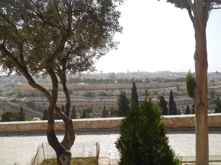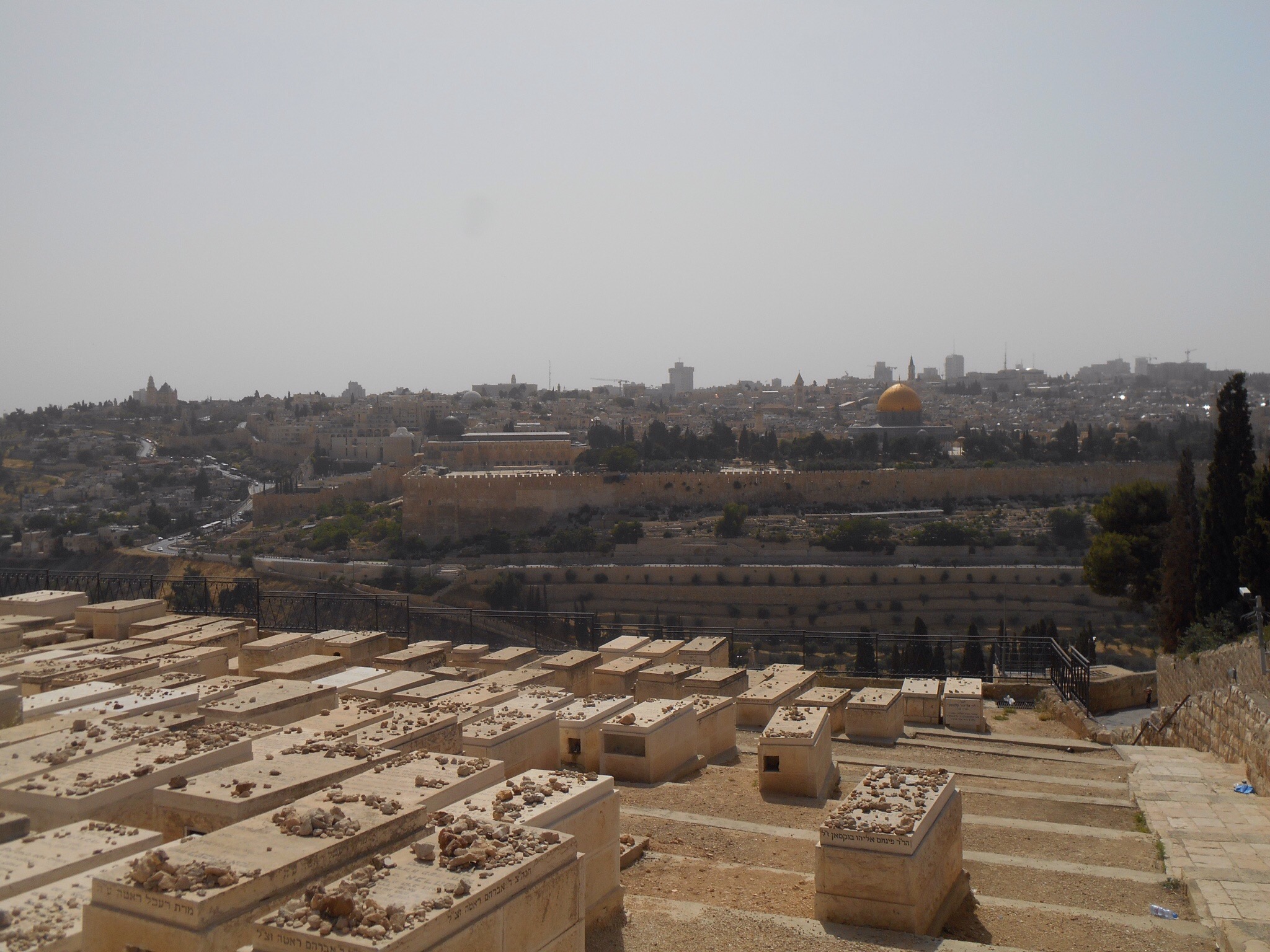 We found aircon for a lunch stop, an escape from the stifling heat, but then fearing how much there was to see in Jerusalem we resisted retreating for an afternoon nap and Gin, Daniel, Marius and I decided to explore the Mount of Olives. This mountain overlooks the city, a valley dividing them. This again is incredibly holy for different reasons, depending on who you talk to. Firstly, the church of the ascension, where Jesus rose to heaven after he was raised from the dead. A church is now built over the spot where it is said you can see the imprint of his foot on the stone. This mount is also where Jesus was when he was betrayed by Judas and captured by the Romans, also where he rode from on a donkey into the city, through the double breasted gate to be crucified. There is a giant graveyard spanning the mountain side where many Jews are buried, believing this is front row seats looking over Jerusalem for when the messiah comes.