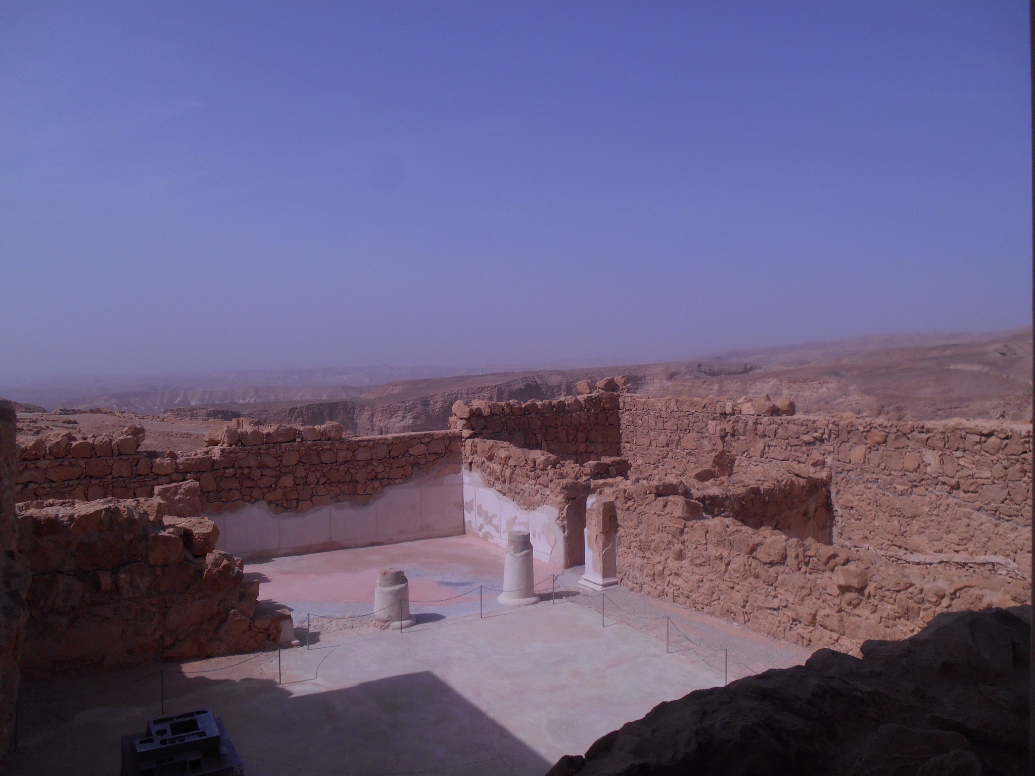It was an incredible view in every direction, the Dead Sea covered by a haze built up by the height in the valley not far off, the Jordanian mountains beyond. With sweat running off I walked between palace walls exploring the remains of entertaining rooms, later converted to settlements for the Jewish seized families. There was also evidence of the Byzantine use with well preserved mosaics in the chapel.