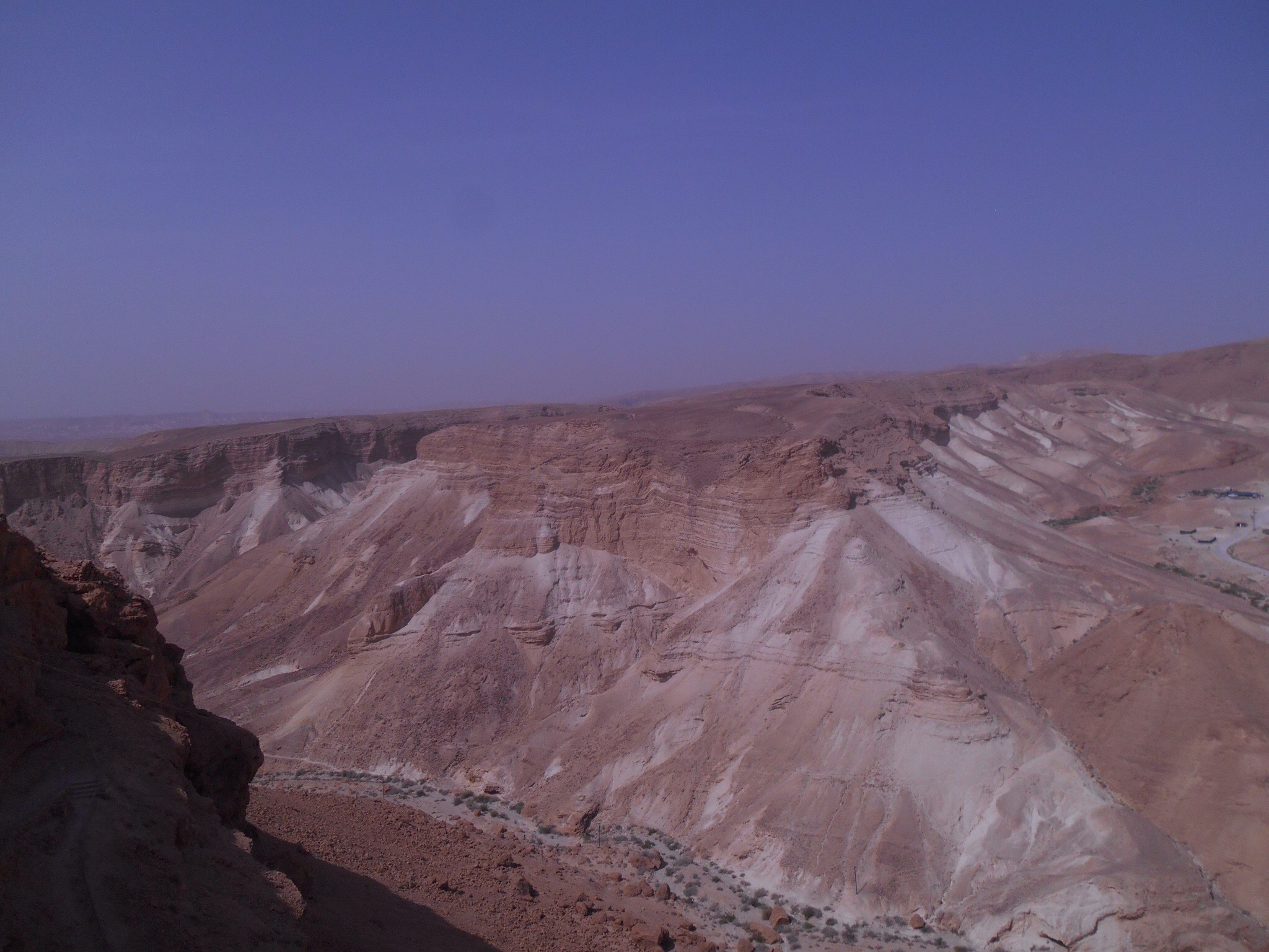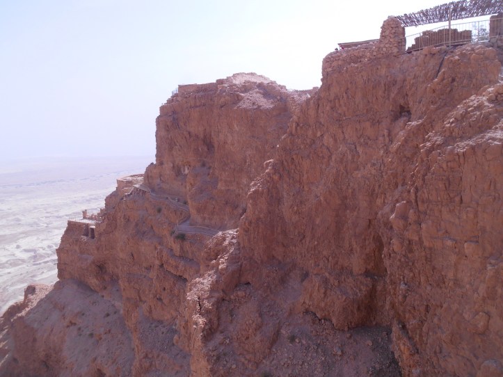 Masada was our first stop, meaning fortress in Hebrew. It is a large hill in the middle of an alien looking landscape, and first built upon by King Herod. Later it was the site of the last stand of Jews fleeing the Romans after they ransacked Jerusalem. The Jews were held in siege on top of the mountain by Romans living below and after several attempts to get them, they built a ramp up. The Jews, seeing their last desperate attempts fail, committed a mass assisted suicide rather than being taken by the Romans, so the Romans arrived to discover dismay and death. The site was later used during the Byzantine period in the 8th century by monks.