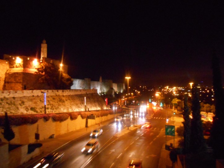 Mum was on her way to share the last chunk of her trip with me, and shortly after 7pm she arrived. After a quick hello she was keen to orientate herself to the city she had visited the year before and we went up Jaffa Road to the markets to walk between fresh figs and fruit, bread and cakes, whilst watching the daytime bustle transform into the night time hubbub. We then strolled down Jaffa Road all the way to the old city walls, much preferring the pleasant warmth of the evening air. In this she showed me a much more up market side to Jerusalem, the designer shops and twinkling lights. After a coffee, it was nice to stroll back to the hotel and once again sit out on the rooftop.