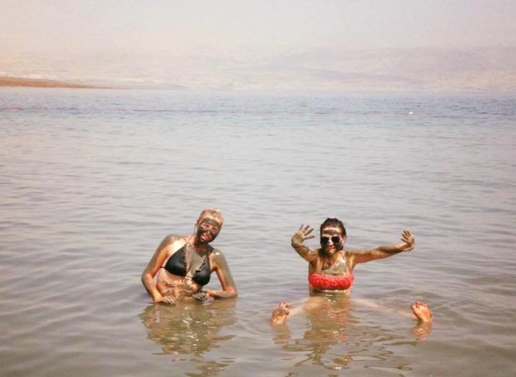 The Dead Sea is an amazing one off. At 33% salt it is so named because nothing can live there, however it is full of minerals and nutrient rich muds. We were now the lowest people on earth at the lowest point on earth, by the lowest cafe on earth, you get the point. The display was showing 47 degrees so we practically ran for the waters edge to then walk across the slimy, muddy bottom looking like toddlers learning to walk, to avoid sliding over. Once in the water, the fun began, bobbing on top of the waters surface like a rubber duck, pushed up by the excessive salt content. If you tried to force your hands or body down, you often flipped over, almost completely out of control. Once the sensation of lying on your back wore on, it was fun to float standing, not touching the bottom but floating at chest level. I found that if you began to bounce, you were being forced up as if on a trampoline. This fun was how I got water in my eye. You don’t want 33% salt water in your eye. It burns. You also don’t want it in you’re mouth, it’s bitter.