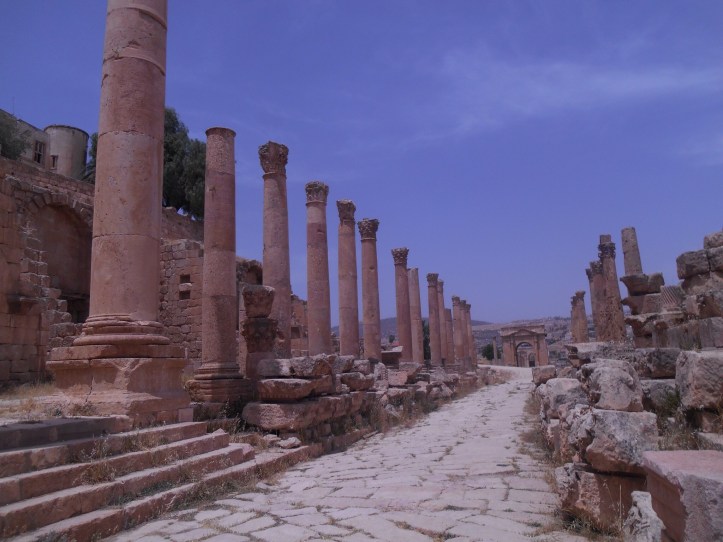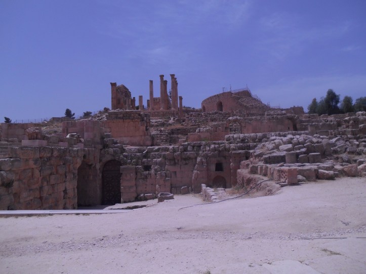 Other buildings that made up this magnificent city was a courthouse, 7 sets of 7 stairs carrying people from the main street. In front stood 11 pillars in incredible decorative condition for their age. Although Jordan has been privy to earthquakes occurring every 90-100 years throughout its history, with a particularly strong series during the 9th century, each time the original rocks have been able to be used to restructure or demonstrate a rebuild. Down on the street level there was shop arches, sewerage systems and an ornate fountain, really allowing the imagination to build on every day life in this colourful city.