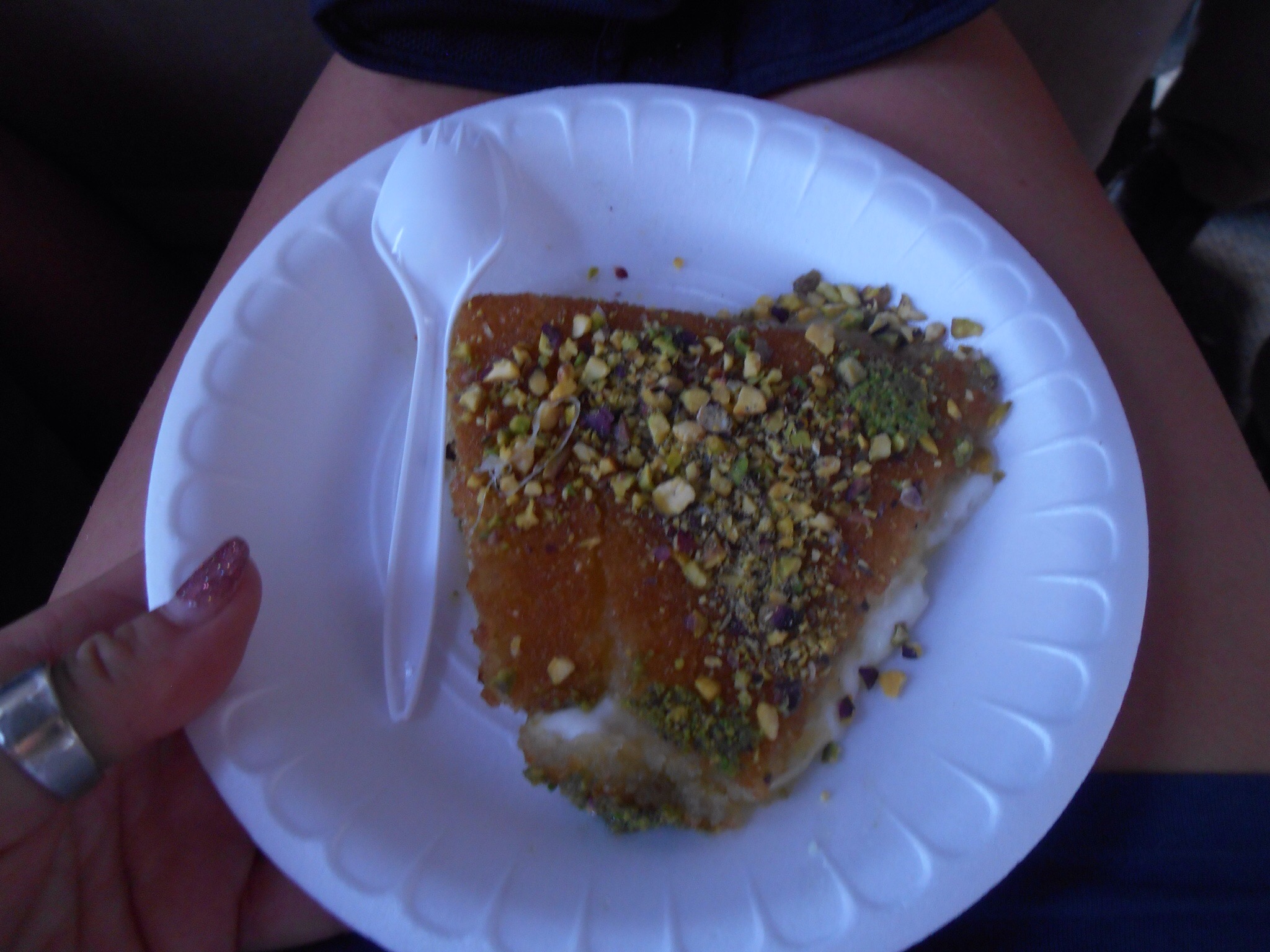 We drove through the contrasting parts of Amman, firstly the old town uniformly sprawled across the hill. We stopped in the busy soq (markets) and Ali brought us all some Jordan Knafeh to try. The base was a white cheese, stringy like mozerella, topped with a sweet topping and pistachio nuts. It was different even to the Knafeh I tried in Jerusalem, a Jordanian twist. Next we drove to the new part of Amman where embassies and beautiful mansions lined the streets. Here the housing was equivalent to a few million pounds so there is definitely money in the city.