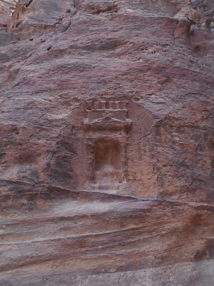 We emerged into the light, a bustling group infront of the treasury, camels, carts and tourists marvelling at the structure carved entirely out of the rock face. It was first assumed this was a treasury due to the large urn depicted, the gun shots showing that Bedouin discoverers shot at the urn to get it to reveal its secrets. In actual fact this building stands above three tombs, now excavated below ground.