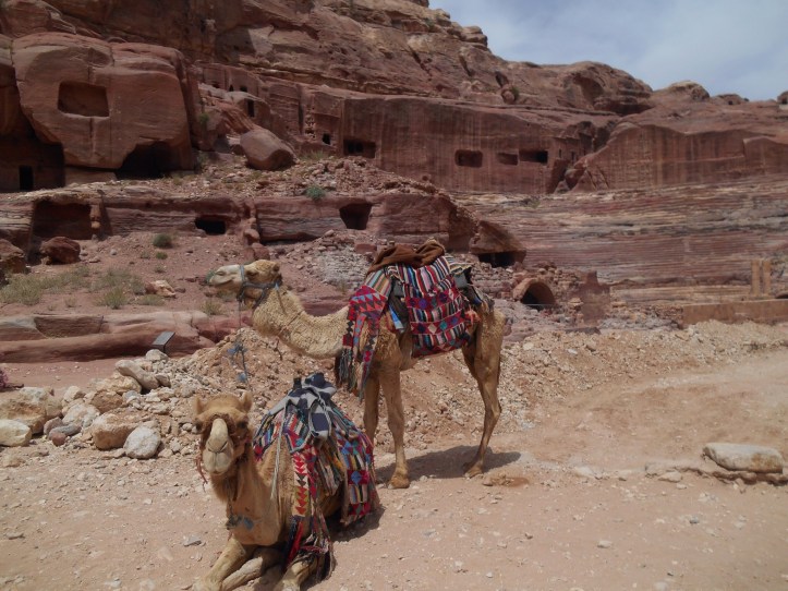 It was incredible to be infront of such an iconic feat and the city from now opened out as we followed the streets round to discover many more carved buildings, tombs and shops. It felt at times like being in the Wild West, camels, donkeys and horses covered in print fabric, bedouins in headscarves, dust and sand everywhere and some shops functioning almost like a high street. A favourite carving of mine was the theatre, again carved out of one price of rock displaying such a wide range of colours from purples to reds.
