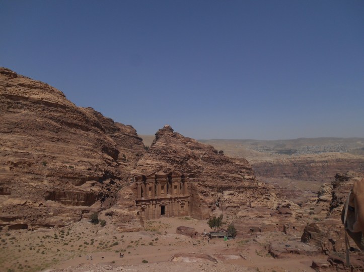 Jordan has suffered in the troubles in the Middle East of the last few years and despite being a stable and safe country, has lost around 70% of its tourism. As such this incredible site was blissfully empty. We had a buffet at a simple restaurant and then got to use the afternoon to explore. With such vast reaches, you could spent 4 days here and not see it all, so we had to gather up our energy and press on. The monastery at the far end of the city was at the end of a climb into the mountains, our guide estimated 800 steps. The walk completely contrasted the rest of the city as you climbed through the stratified rock, marvelling just as much at the sprawling natural beauty as the architectural feats. Little donkeys made their way up and down the steps carrying tourists, but despite the heat we plodded on up.