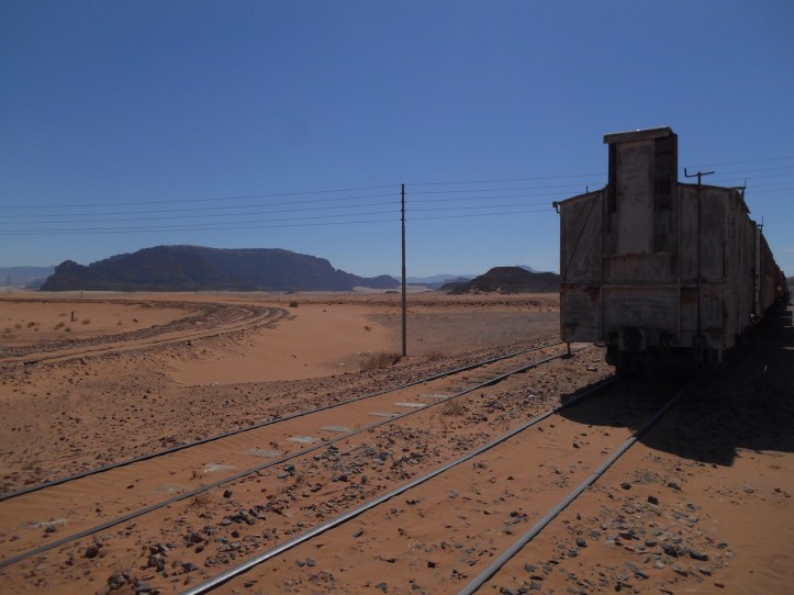 In a bid to explore the desert, the bus began south for a few hours, into the desert surroundings and to Wadi Rum. This was Laurence of Arabia country where Laurence had led bedouins through the desert to capture Aqaba. We all piled out to see the steam train which used to connect Jordan with Turkey and Syria and beyond, now it’s old fashioned carriages used only for film sets such as Laurence of Arabia.