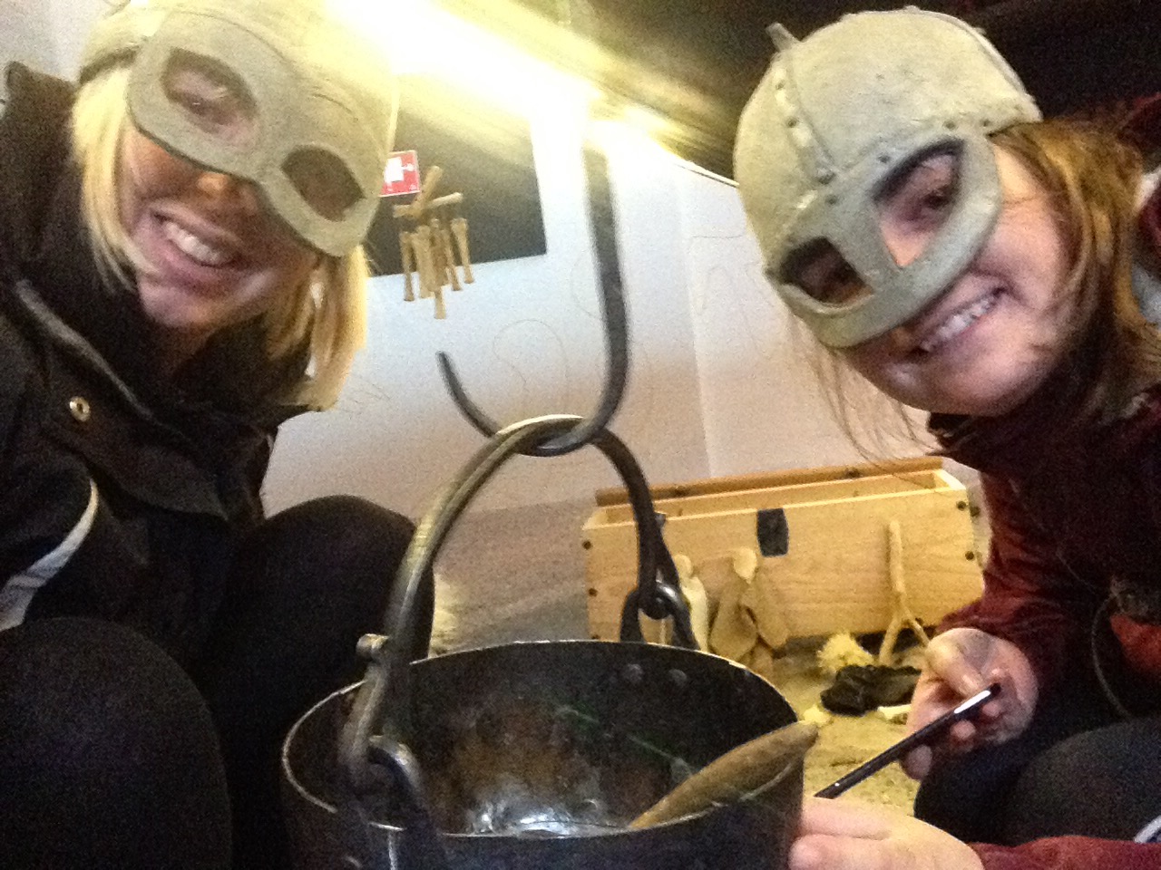 Next we headed for the settlement museum, literally called 871 +-2, where a Viking settlement had been excavated beneath a building. The museum credited the first settler to be Ingolfr Arnarson, a Norwegian chieftain. Icelandic language is Germanic, a form of old Norse which has developed less due to being isolated over the years. After exploring the adult part of the museum, we went to visit the more visual kids area where you could dress up as a warring Viking and also experience life as a Viking child. I challenged Kylie to a competitive match of fox vs lambs, and much to her disgust, ate all of the lambs before she could trap me, meaning a fox victory.
