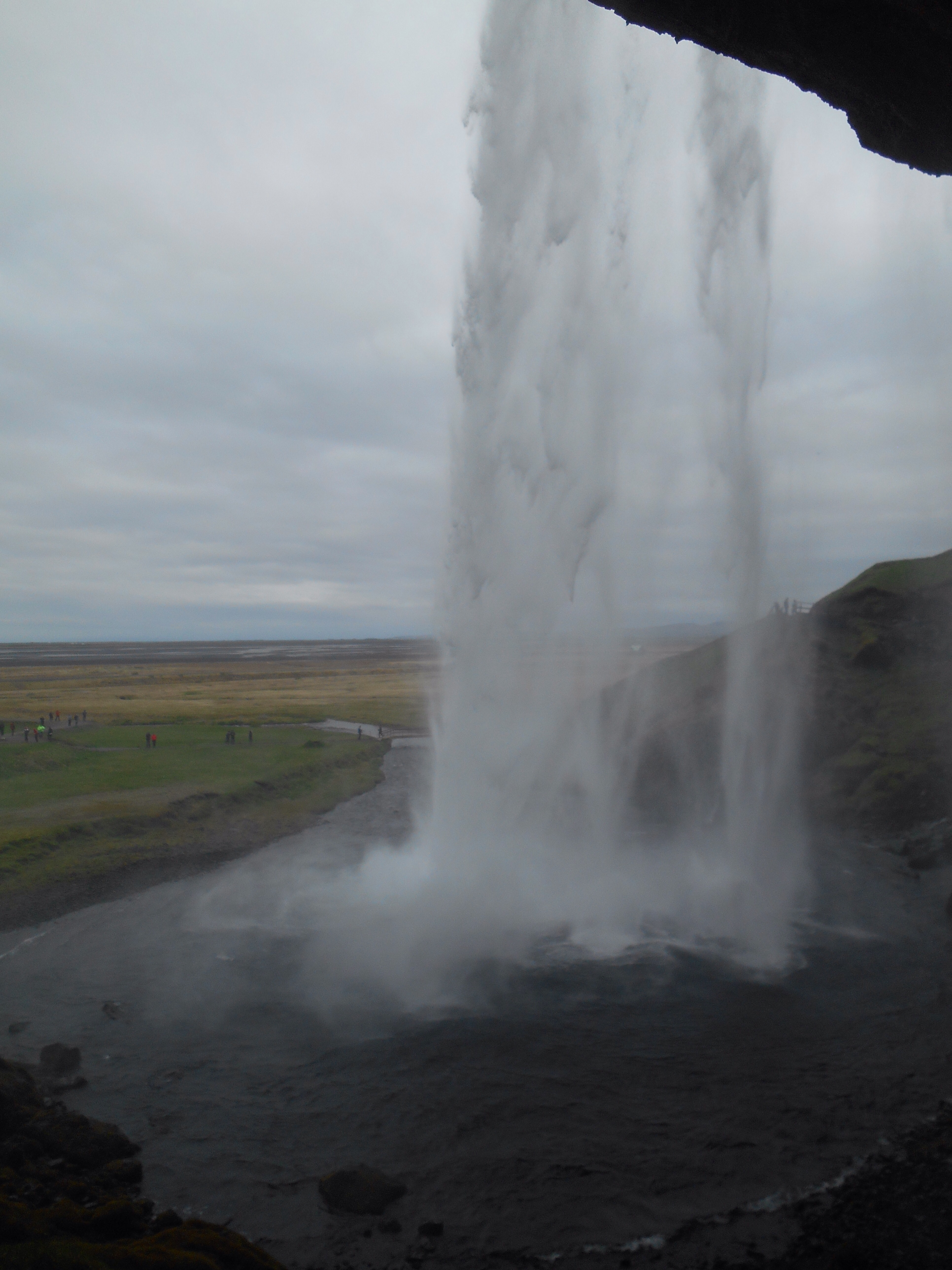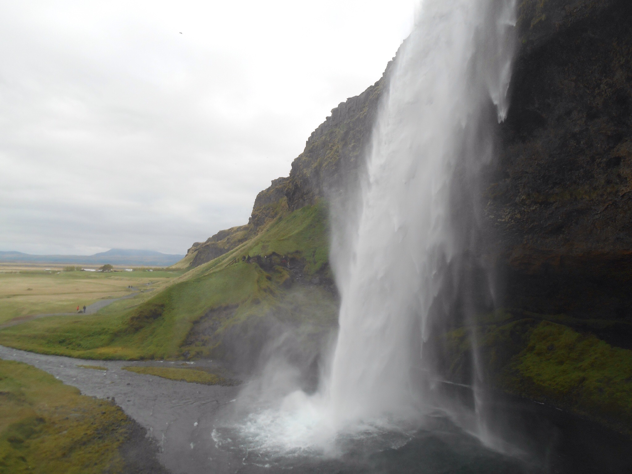 Travelling as a group of 10 new volunteers we represented England, Scotland, Wales, France, Canada, Bulgaria, America and Denmark. Everyone was sideways glancing to see how fancy each other’s kit was, how much stuff everyone had packed and how we would all fare with our physical adventure. We boarded the bus together and about 2 hours outside the city we entered the national park, stopping at Skellafoss waterfall. The landscape here is on a big, open scale and with very few buildings, cars and people around it is hard to gauge scale. Up close to the drop it was a huge torrent and you could walk around the back of the deluge whilst getting covered in spray, stand under the rock lip and look out at the greenery beyond.