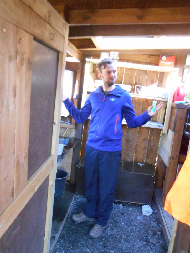 From our high vantage point we could see how the weather moved past across the skyline. From a hot morning we had a windy lunchtime and rain late afternoon, so we were muddy as we plodded back down at the end of the day. With two hours of free time before dinner many of us feasted on post work snacks, showered and sat around the cabin waiting for smells to diffuse deliciously from the kitchen. Despite the tiredness, sitting around post dinner over a hot drink listening to Frederik playing gently on the mandolin was all too tempting as the sky never darkened, still in perfect lightness at 11pm and the birds chirping away.