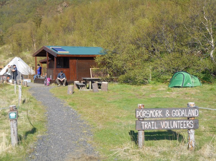 After lots more bouncing we arrived to Husadalur where team members were waiting to walk with us the half an hour walk to Langidalur camp, our new home. We met the camp volunteers who were an operations team of 7 and with lots of new names to remember sat down to share lunch and be briefed on life and work for the next 6 weeks. We were to be Thorsmarks trail team, conserving the park trails, repairing volcano damage and general maintenance work. The job promised to be challenging, physical and a rewarding learning curve for all of us. Half the team were sent after lunch to the camp across the river to split the work leaving 6 volunteers, three team leaders and the volunteer coordinator Tony, who assured us previous volunteers had described him as “not as grumpy as he looks.”