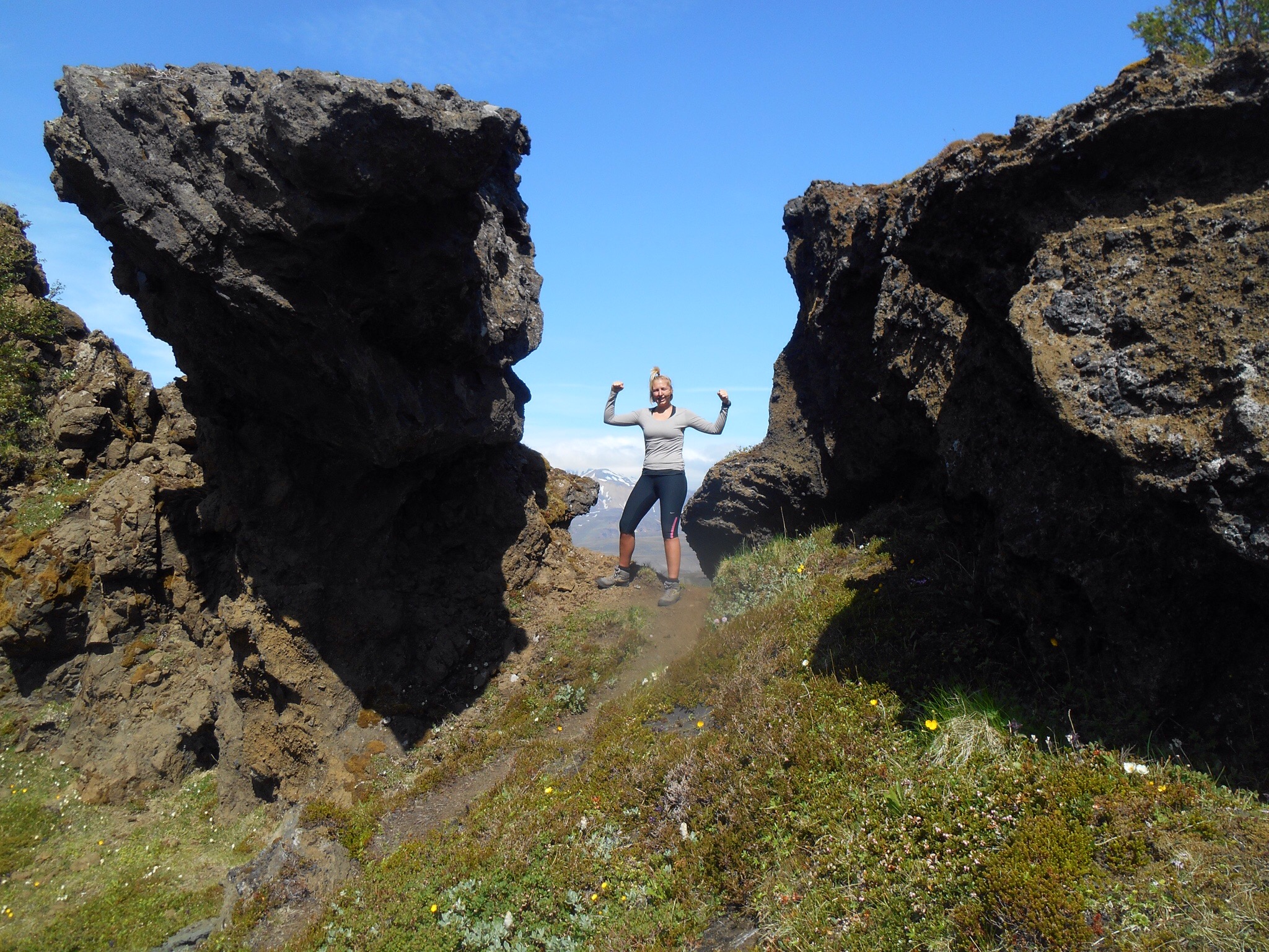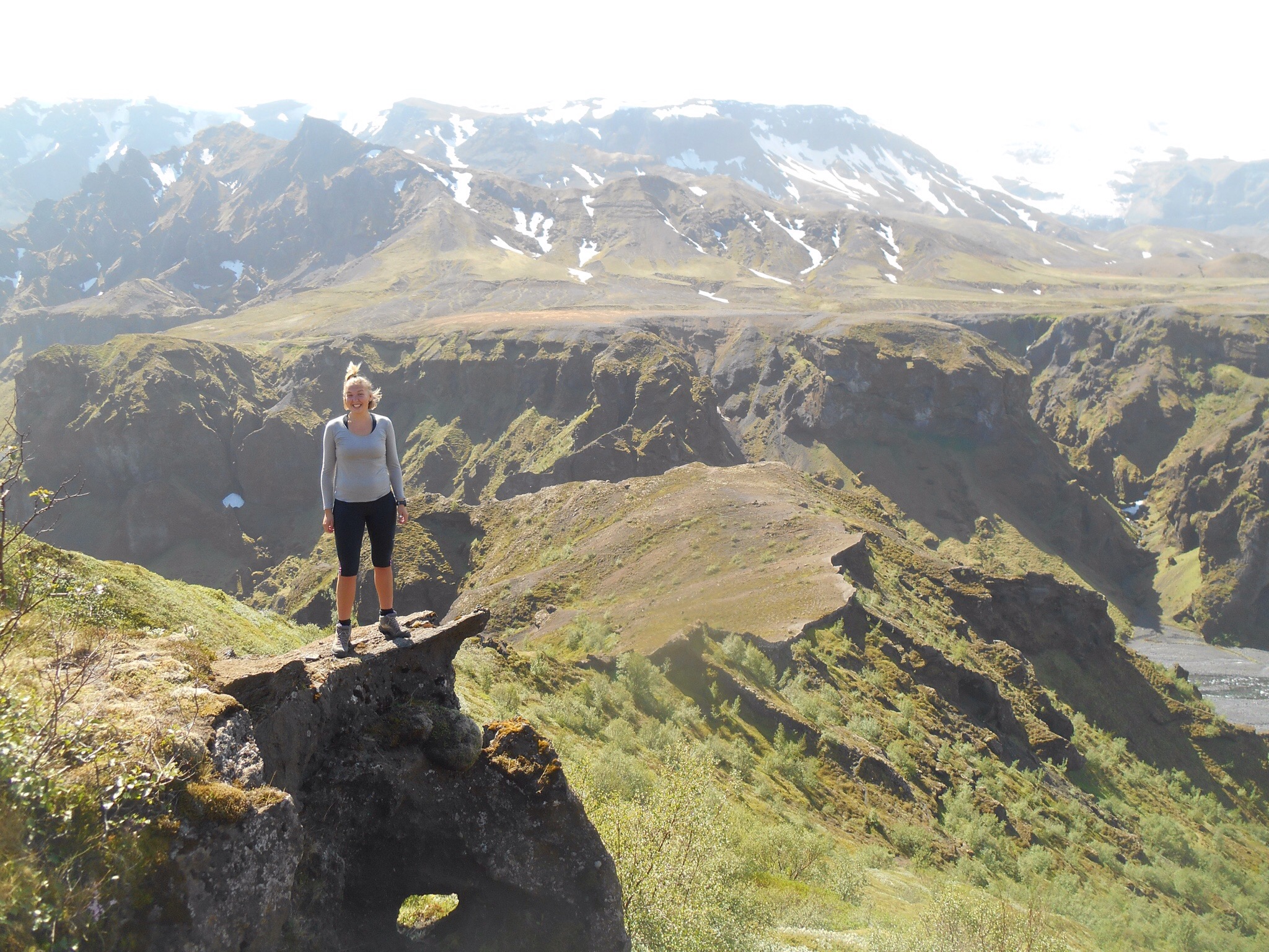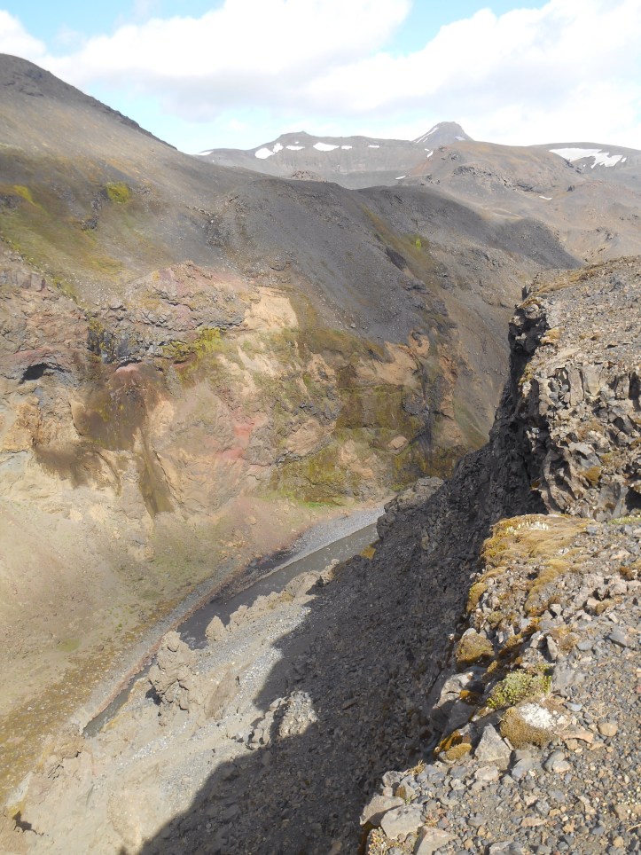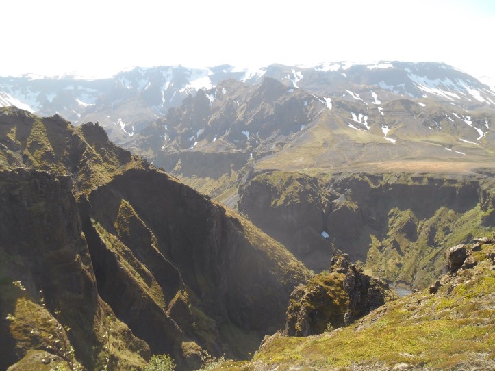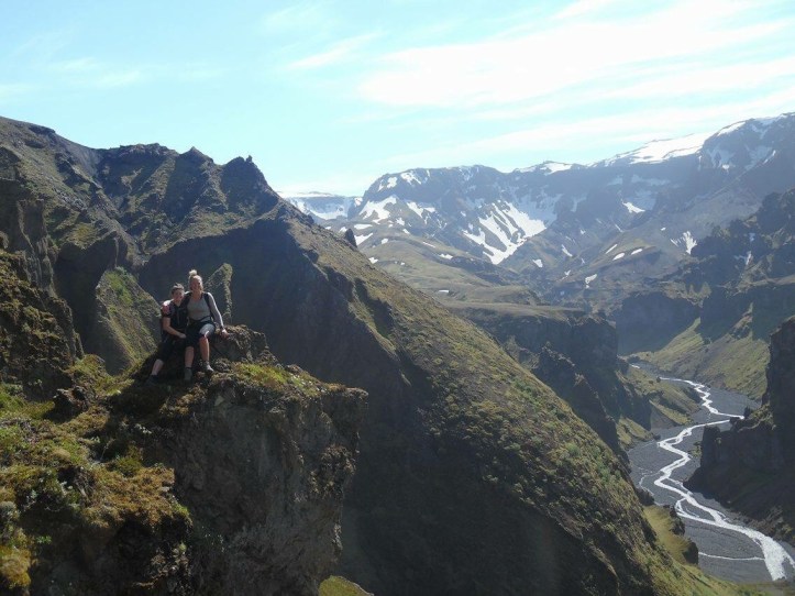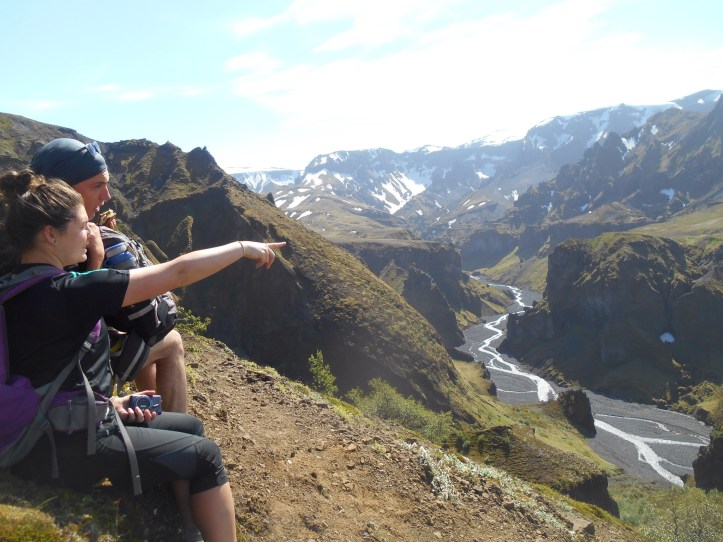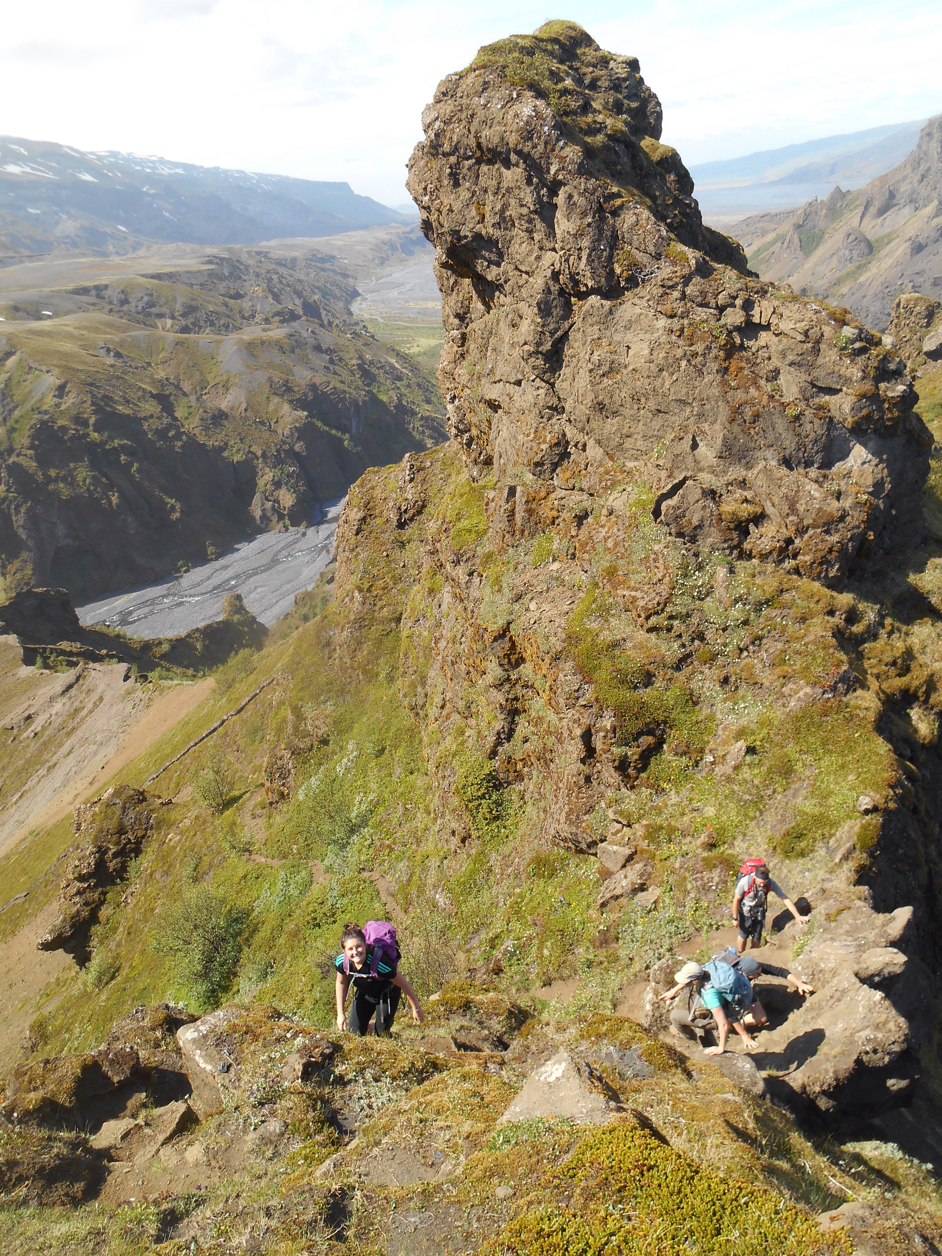 Weekends in Thorsmark are a chance to further explore our new home and after a relaxed Saturday we donned our walking boots once more to tackle Rettafell, the mountain outside our front window. We crossed the river to B’asar where warm weather and warm greetings started our hike, first to the mythical looking elf church, then up the side of the steep mountain. All along were perfect backdrops for photos with blue sky and a long drop behind. As we munched our pack lunches we picked out shapes in the mountainsides and clouds, some sketching, some sleeping, and the usual happy noises of singing and contagious laughter.