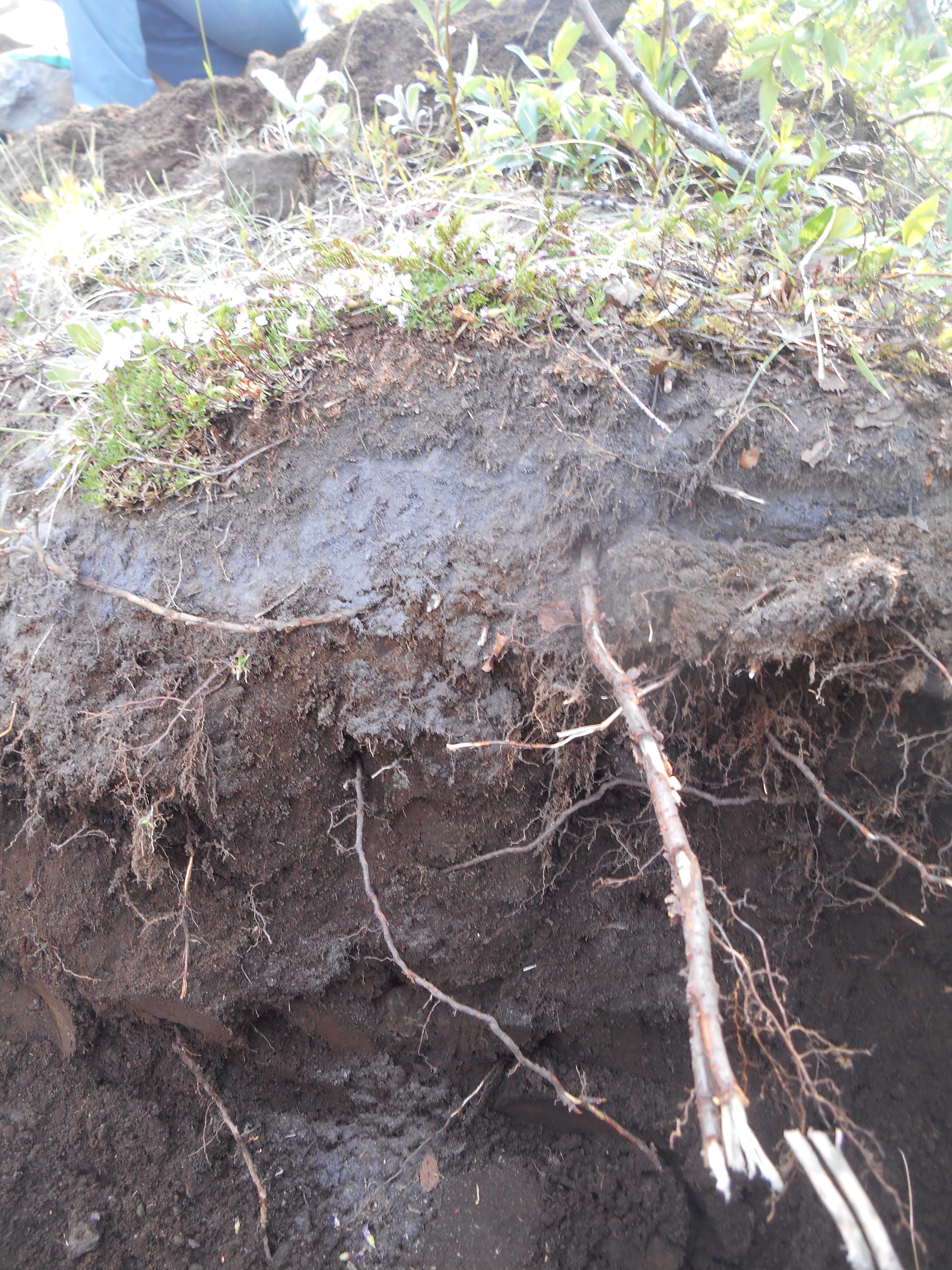 Week three stretched out ahead of us, the ever multiplying group dividing into four for the week. Our small team would be working on the base of the Landmannalaugar trail, named in the top 20 trails by national geographic. In a bid to improve the trail surface the aims are to improve water drainage to stop water channeling down the path, widening the path, improving the surface and getting a comfortable gradient which doesn’t mean the loose, dry soil of Iceland ends up with a making a bid for the bottom of the hill. This translated, log drains, stone drains, steps and way markers. As Anna began collecting formidable tessellating stones for our drain, I began digging them a trench across the path. It is really clear to see a layer in the soil, maybe an inch or two down, of the ash from the eruption of the volcano Eyjafjallajokull (Ey-ya-fyat-la-yo-kul) in 2010.