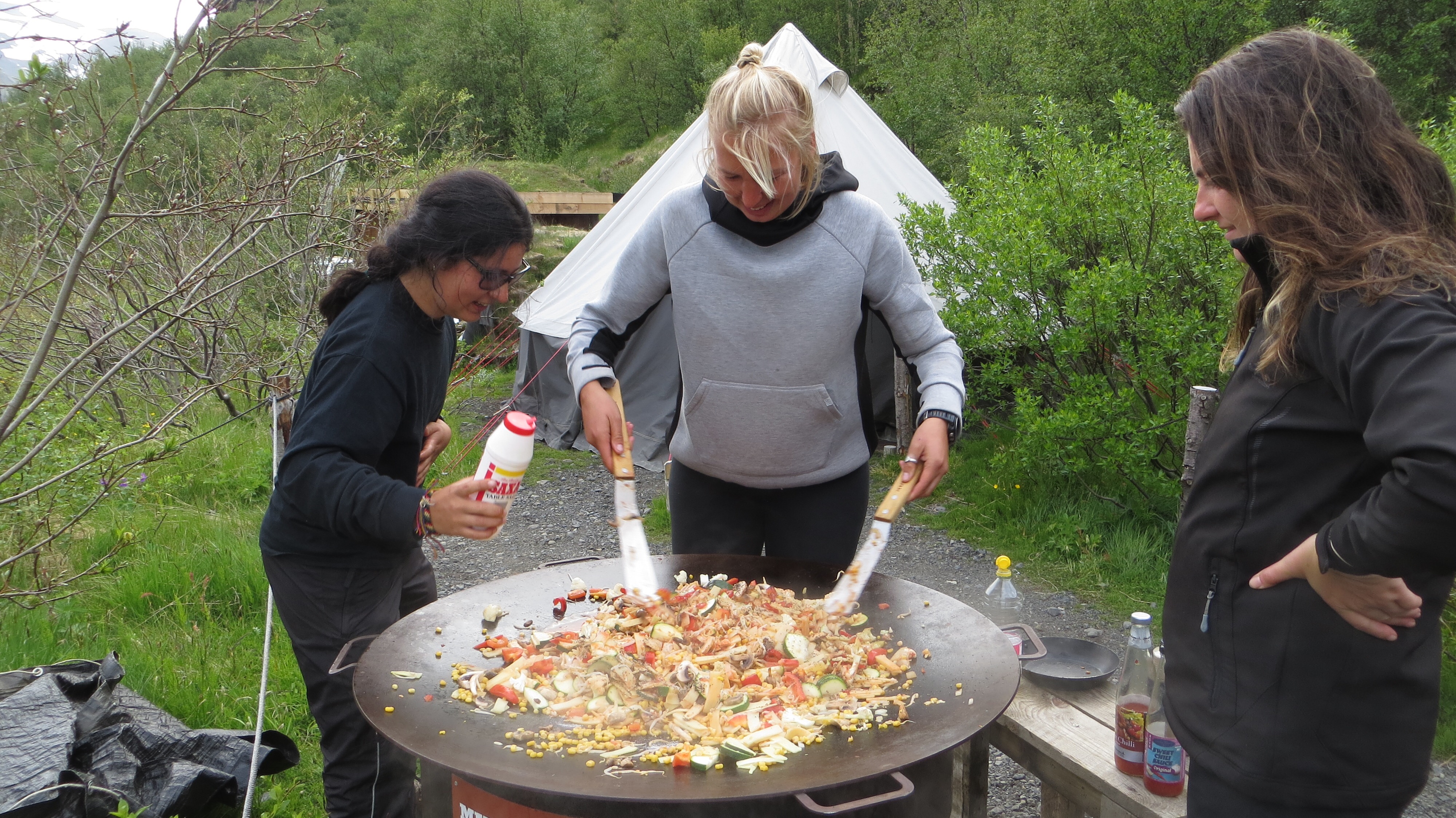 Monday’s muscle shake up ended in a bout of Lupin removal and then returning home end of the day for a meal across the two camps before the long range teams departed. I was on cooking duty with Cat, a daunting 30 people to cater for as we chopped vegetables for stir fry on the giant outdoor wok. Following closely to Maria’s Gordon Ramsey like instructions the meal was a success.
