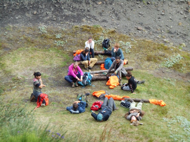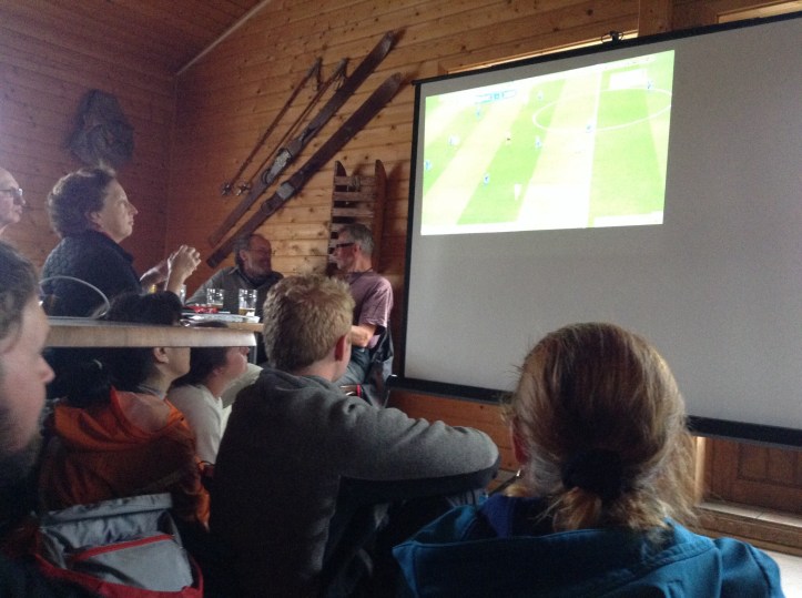 Last minute it appeared that the rumoured ‘super long range’ trip was on the table commencing Tuesday, the very next morning. This would be an opportunity to work on the Laugavegar trail, a 56 km multi day hike from Thorsmark to Landmannalaugar in the highlands. Despite the imminent long walk, everyone jumped at the chance and teams were revealed Monday evening. I would be part of the first group to take on the new challenges further up the trail but far from getting prepared, we all headed to Husadalur to watch the Iceland vs England game. Feeling very unpatriotic after a gutting referendum result there was no one gunning for England and the small cafe with maybe 100 spectators roared loudly for the Iceland goals. Cross legged on the floor we watched the game in tense excitement as the tiny country making its premier in the Euros knocked England out.