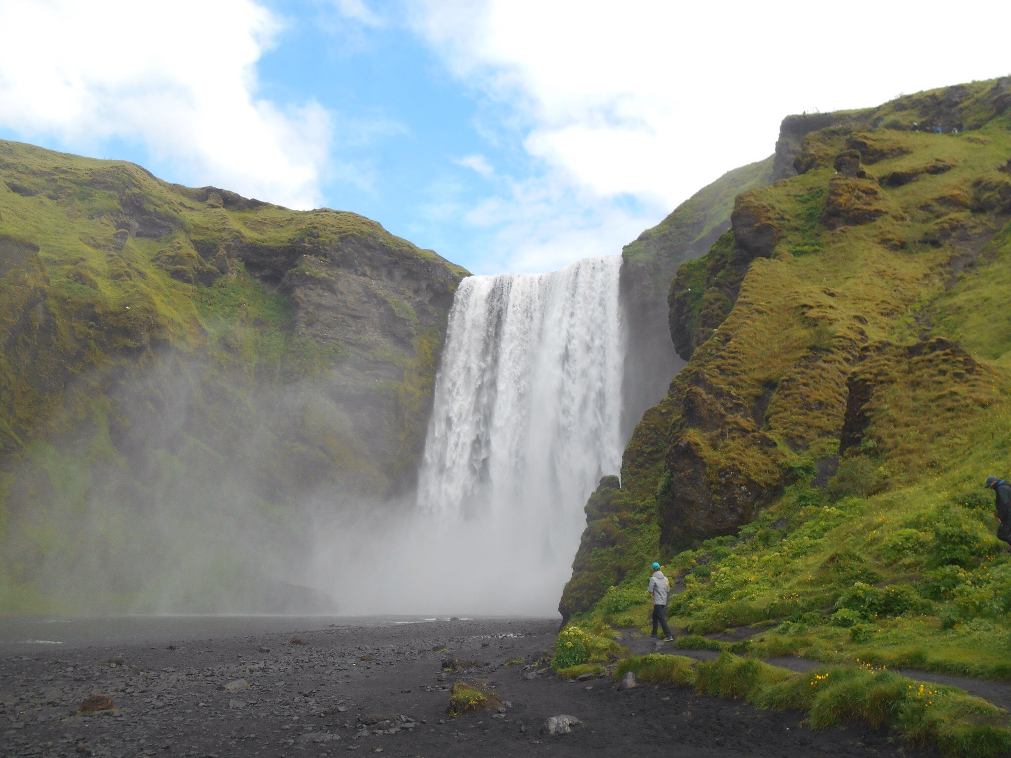 The bus left at 7:30am for Skaftafell. Despite my fail proof way of remembering gas, milk, underwear, I still had to run back to grab all three last minute. Then we had to play charades though the window to Cat as Freya didn’t have her waterproof trousers. Finally on our way we made our way out of the park on our bus which had more time sightseeing than travelling. 4 hours later we were still on the outskirts of the park having made a stop twice at Selanjafoss waterfall and at a petrol station. Finally heading east we had some incredible stops, firstly the mighty Skogafoss waterfall, then at a black sand beach, Reynisfjara. The basalt columns of the cave wall resembled Giants Causeway, building blocks like Jenga bricks or the tubes of an organ. I got pulled down the beach exploring further the strange rock formations, sometimes warped, sometimes straight like columns. Up on the cliff I saw a puffin nesting, my first glimpse of this beautiful bird. As I made my way back to the bus, having quite lost track of time, Billy approached me. The bus just tried to leave without you he said. That could have been an interesting start to the week.