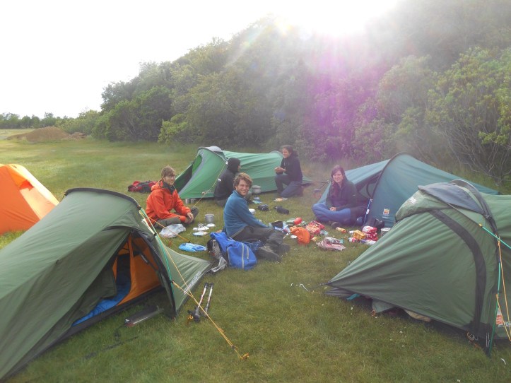 Monday’s weather was equally uninspiring and we piled to Husadalur for more cakes and rounds of jungle speed. In the evening, the remaining group across the two camps joined for a joint stir fry and planning meeting about the activities the rest of the week would hold. The long hike across the park would be going ahead with the warning of potential of heavy snow still underfoot. The other option was a trip to a national park in the east, Skaftafell. A quick turnaround was required on the decision and unfortunately the group would be splitting. We were invited to ‘Chas’s supermarket’ to pick out enough food in pairs for the rest of the week. Stashes of trail mix and chocolate pudding were first to go, instant packs of cous cous and noodles hesitantly awarded for each meal.
