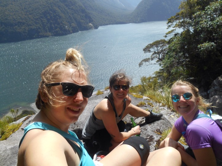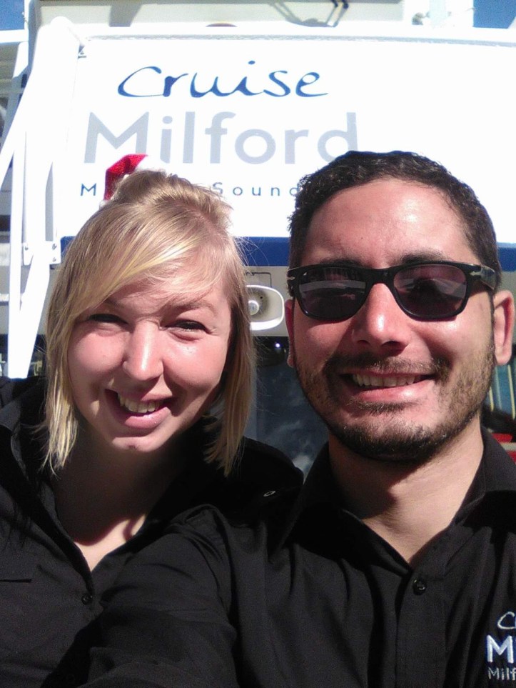 Cruise Milford and Jucy had Christmas Day off and the sun was out! We had a joint brunch of pancakes, quiche and leftover goodies before everyone went on their separate adventures. Jaemi, Allison and I decided to tackle the tricky Bowen falls walk. Bowen falls is an everyday view, a stunning waterfall with a 160 metre drop and it supplies both our drinking water and powers a hydro electric plant which gives the village electricity. The walk is a tricky traverse through dense bush, up the water pipeline, along a sketchy pipe and out onto a gushing river fed from the Grave glacier. We all slipped several times, some more compromising than others, but eventually made it to the little edge with the panoramic viewpoint to enjoy a well earned but warm beer. It felt high, but with everything the scale is impossible until one of the boats came past to enter the harbour and looked so small, then your feet tingled with the knowledge you were high.