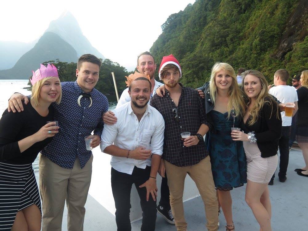 Cruise Milford and Jucy had Christmas Day off and the sun was out! We had a joint brunch of pancakes, quiche and leftover goodies before everyone went on their separate adventures. Jaemi, Allison and I decided to tackle the tricky Bowen falls walk. Bowen falls is an everyday view, a stunning waterfall with a 160 metre drop and it supplies both our drinking water and powers a hydro electric plant which gives the village electricity. The walk is a tricky traverse through dense bush, up the water pipeline, along a sketchy pipe and out onto a gushing river fed from the Grave glacier. We all slipped several times, some more compromising than others, but eventually made it to the little edge with the panoramic viewpoint to enjoy a well earned but warm beer. It felt high, but with everything the scale is impossible until one of the boats came past to enter the harbour and looked so small, then your feet tingled with the knowledge you were high.