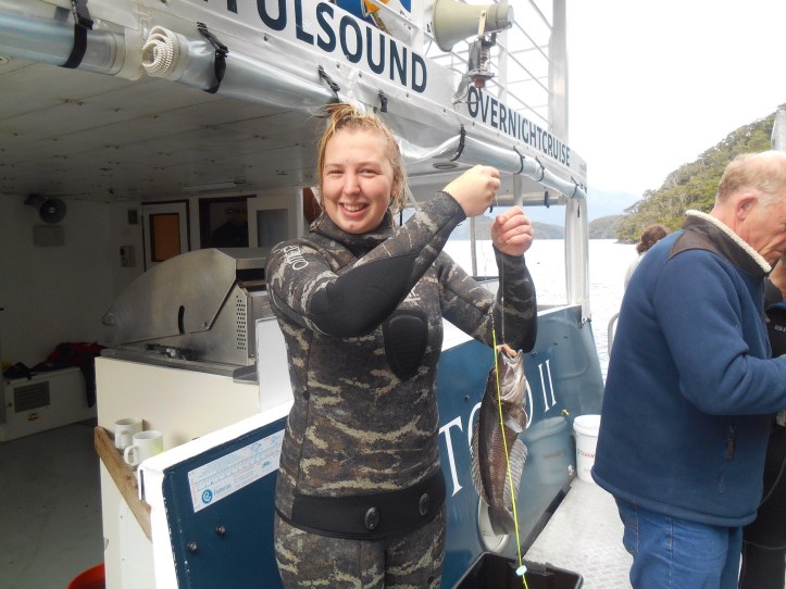 After diving I joined in with the fishing, catching myself a blue cod and 2 sea perch. Fishing is more fun when you actually catch things, I concluded.