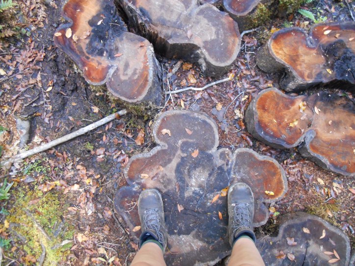 At the end of the bridge we started up into forest and the 6 hour hike up ‘the hump.’ When we got to the water stop, Water bridge, we puzzled at where the water was. A saucepan on a string was balanced on the bridge and we entertained ourselves plunging it into the water to fill our bottles.
