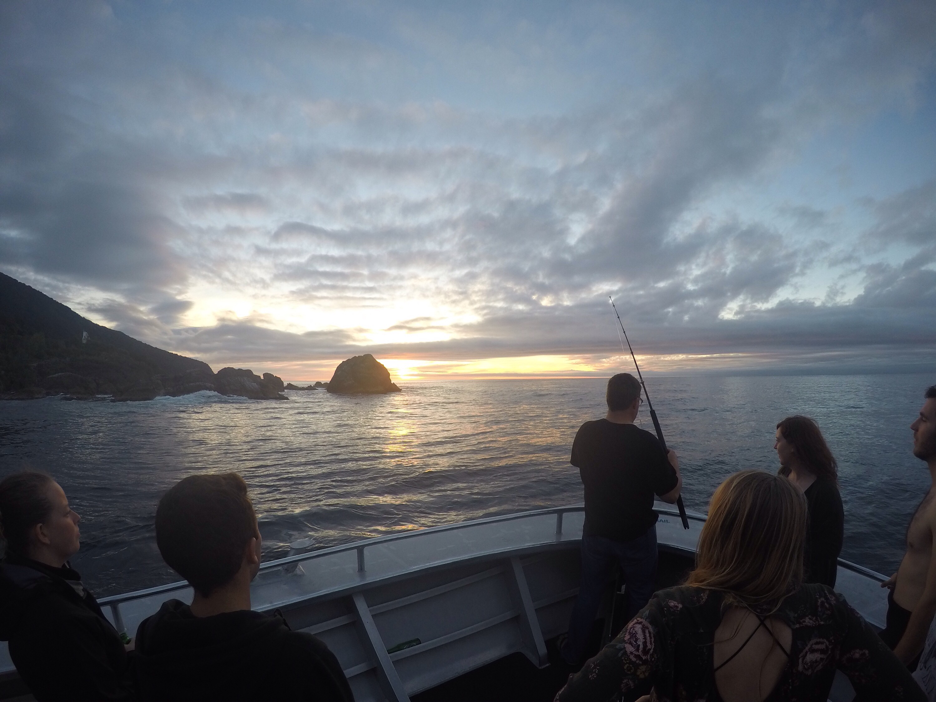 In my last week we took the Mitre peak boat out for a sunset trip. There was fishing, eating and even a brisk swim in the Tasman sea as Holly, Jaemi, Frazer, Gavin and I jumped from the bow. The photos look desert island hot, I can assure you it wasn’t!