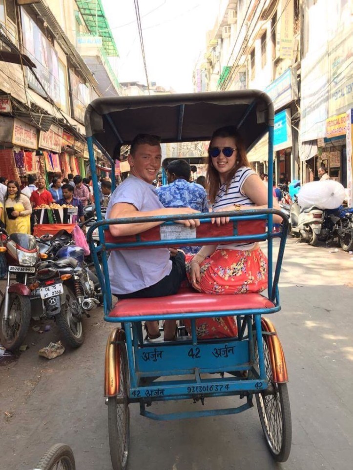 After a few hours rest we made for the pool, the heat of the day already building around us. We were then collected to be taken into the city. The traffic was bustling, slow moving but fluid as horns were used instead of indicators, every opportunity seized and the idea of lanes, a foreign concept. Tuk tuks fought with pedestrians, rickshaws, monkeys, cows, dogs, buses and private cars (like ours which has ‘tourist’ blazoned across the front.)  There is 25 million people in Delhi, 25,000,000 parallel lives, and said to be around 1500 car sales made in a day.