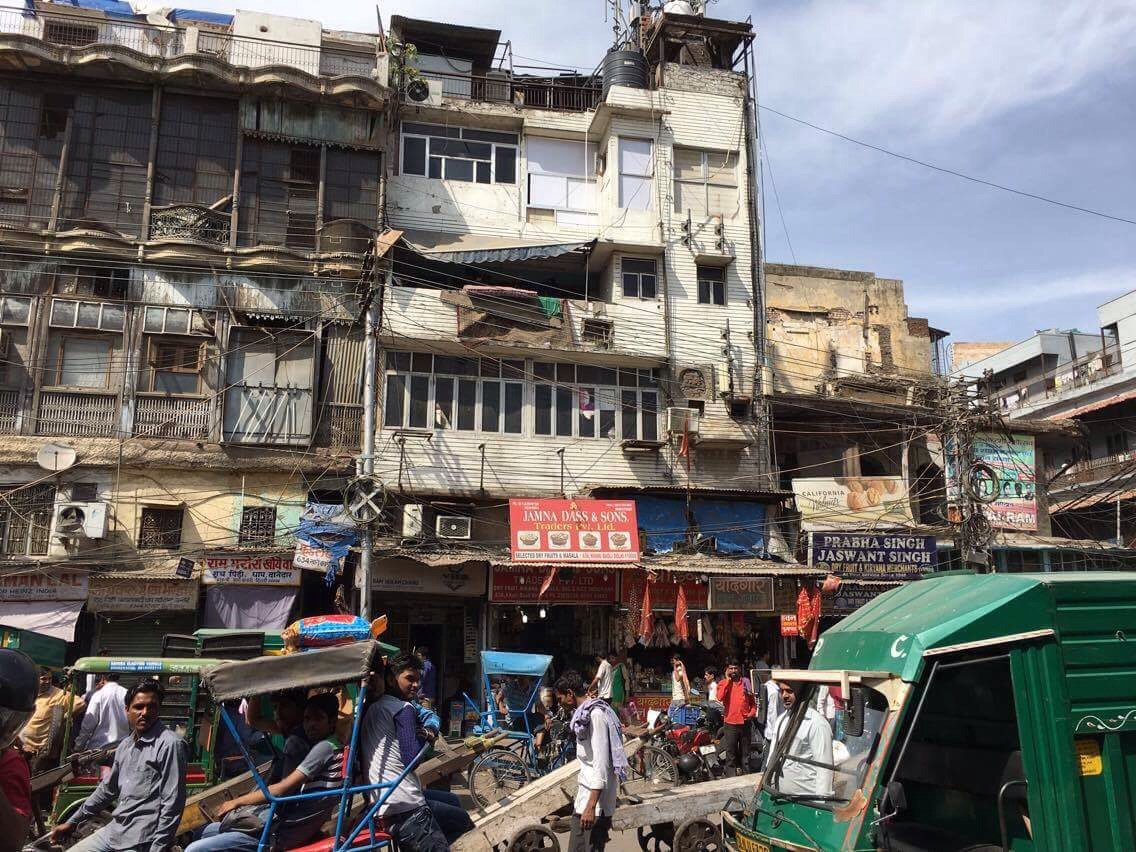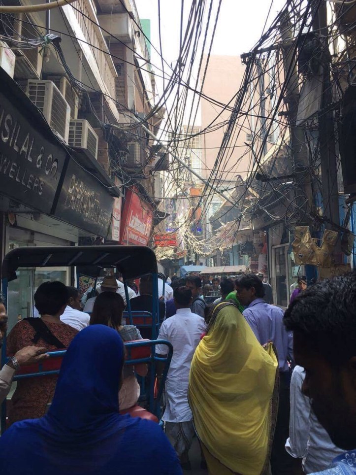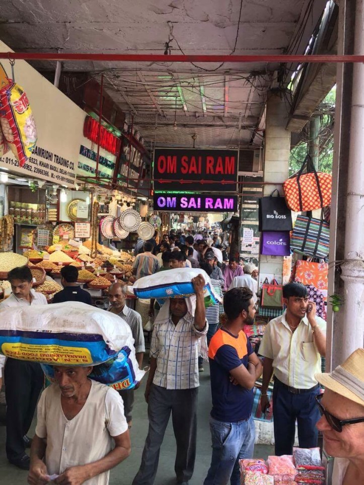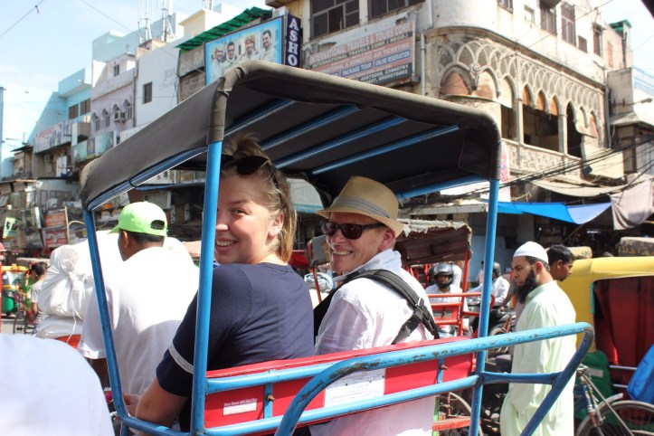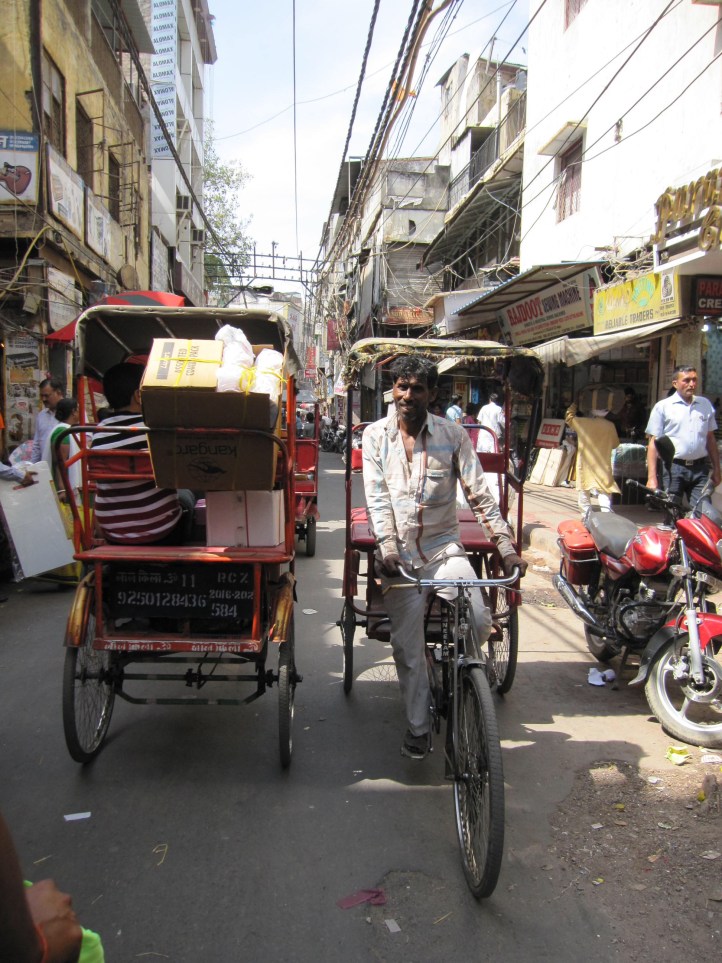 We were booted from our comfort zone to get a rickshaw ride at Chandni chowk, a network of markets and lanes with shop fronts spilling into the street. In our pairs, our hot driver peddling at some speed, we weaved down this network of narrow alleys, each one with entwined cables running amok over our heads. One street sold mostly silk, another, wedding street, sold saris. The noise was palpable as drivers whistled in place of a horn, swerving by millimetres the oncoming carts and people who appeared unperturbed. There is a complete lack of aggression in every near miss and crazy move, maybe a telling hand wobble to signify it’s okay, an incredible move away from road rage.