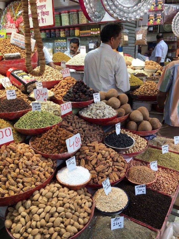 At the end of the road we stepped out at the spice market where the street ran on for four miles of colourful hubbub. The architecture if you cared to look above the level of shopfront was a mix of architecture with pieces added on over the years so wonky compartments barely connected. We were taken into a spice market to sample. The smells of spices, seeds and teas were pungent, amplified from anything you have smelt before. Teas in mango, blueberry, rose and chai refreshed our thirst, cinnamon bark broke sweetly on your tongue and the variety of curry powders in each shade was overwhelming.