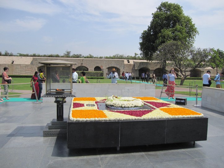 With our guide Jimmy, a slow, deliberate man, India’s David Attenborough, we made our way to Old Delhi to look at Ghandis grave, Rajghat. Ghandi was significant for being a well loved revolutionary who gained India independence from the British in 1947. We approached his simple grave from above to look down on the square structure burning with an eternal flame.